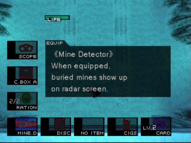 Sorti 3 ans plus tard, Metal Gear 2 décuplait la formule initiale ! Tout est meilleur : gameplay, graphismes, bande-son... final, cette nouvelle vision de Metal Gear n'est pas si mal, mais elle comporte un vrai bon point, et un très mauvais. Le bon point c'est qu'en pressant les 2 gâchettes hautes (L1+R1 sur PlayStation) on ouvre un menu. Ici on peut régler son écran, ses paramètres audio, changer la configuration des touches (c'est toujours une bonne chose) mais aussi et surtout réaliser une sauvegarde rapide ! Oui, une Quick Save ! On a 8 emplacements pour organiser son avancement dans le jeu et croyez-moi, ça rend bien service. D'ailleurs s'ils l'ont fait pour ce jeu, pourquoi ne pas avoir fait de même avec le vrai Metal Gear ? Car franchement, ça manque...