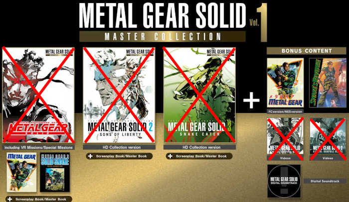 Vous l'avez déjà remarqué, cette compil' est marquée d'un "vol.1" et Konami a déjà précisé qu'au minimum un "vol.2" verrait le jour. Car oui, malgré une très jolie liste de jeux, il manque encore un paquet de gros hits : Portable Ops, Peace Walker, Ground Zeroes, Phantom Pain, Guns of the Patriots, Rising Revengeance et bien entendu The Twin Snakes. Faisons donc une petite mise au point. Tout le monde gueule et s'insurge sur le fait que Twin Snakes (qui est le remarquable Remake du premier opus exclusif à la GameCube) n'a jamais été porté sur d'autres supports. Et bien c'est exactement comme Bayonetta 2 et 3 : Nintendo a financé une partie du projet, donc vous ne verrez probablement jamais Twin Snakes (ainsi que les suites de Bayonetta) sur une autre console ! Oui c'est dégueulasse et injuste mais le monde du jeu vidéo est injuste, et Nintendo malgré la belle auréole que beaucoup lui mettent sur la tête, sont encore plus conservateurs que les autres.