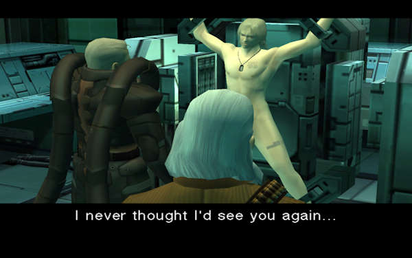Et ce qui est marrant c'est que tout le monde a craché sur cette VF, mais pas forcément sur eux, uniquement sur le doubleur de Snake parce que voilà, c'est lui qu'on entend le plus et c'est vrai, il en fait peut-être un peu trop. Tout ceci est malgré tout bien dommage car à cause de la réception du public (croisé avec la flemme de Konami de s'investir d'avantage dans les doublages localisés), et bien MGS1 est l'unique épisode en VF. Et c'est regrettable car même si le doublage est un peu bof-bof, il est tellement plus agréable de suivre son jeu tel un film interactif, plutôt que de lire ses saloperies de sous-titres qui nous font rater des tas de détails...