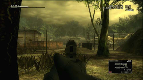 Le pire c'est que par moment, le jeu reprend ses vieux travers, comme dans les bâtiments ou certaines zones un peu cloisonnées, où la vue redevient plongeante. Mais au lieu de nous proposer une inclinaison vue de dos, nous voyons Snake de face, comme ça impossible d'anticiper la présence d'un ennemi, d'autant qu'en vue FPS vous vous en doutez, on ne peut plus bouger (et oui, au final c'est pire que dans Resident Evil 4).
