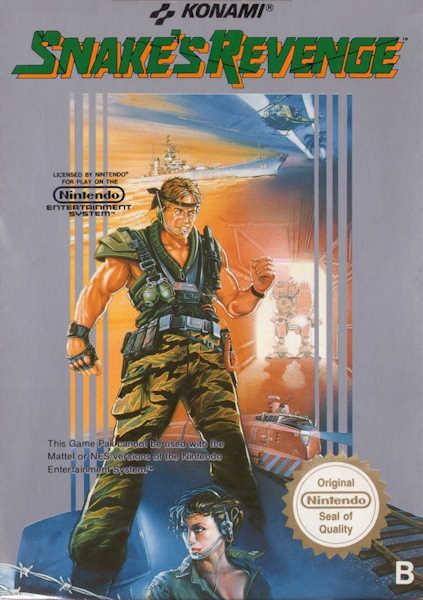 De son coté Snake's Revenge est encore une fois un portage NES "inspiré" de ce second épisode. Il est la suite directe du premier opus paru sur NES, mais reste "non canon" par rapport à la saga, car là aussi, le jeu a subi de nombreuses modifications. Une fois encore il n'a pas été développé par l'équipe originelle et n'a pas été supervisé par Hideo Kojima, qui à ce moment-là travaillait déjà sur Policenauts. Plus porté sur l'action, comme le veut la tradition des jeux console, vous remarquerez que de toute façon le titre se permet de même plus de porter le nom "Metal Gear". Et ça se comprend puisque Snake se prend pour Rambo. Cette fois notre héros du jour prend son flingue avec lui, il jouera également des poings, mais les ennemis sont très nombreux, ils débarquent par surprise et vous poutrent en quelques coups à peine. Donc on prend les mêmes et on recommence : nous avons accès au même menu "in game", ce fameux menu où on peut changer sa config', ses paramètres audio et vidéo, et où on peut réaliser une "quick save".