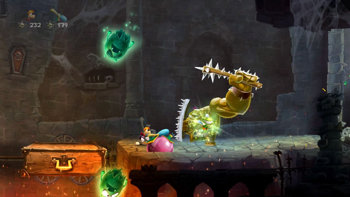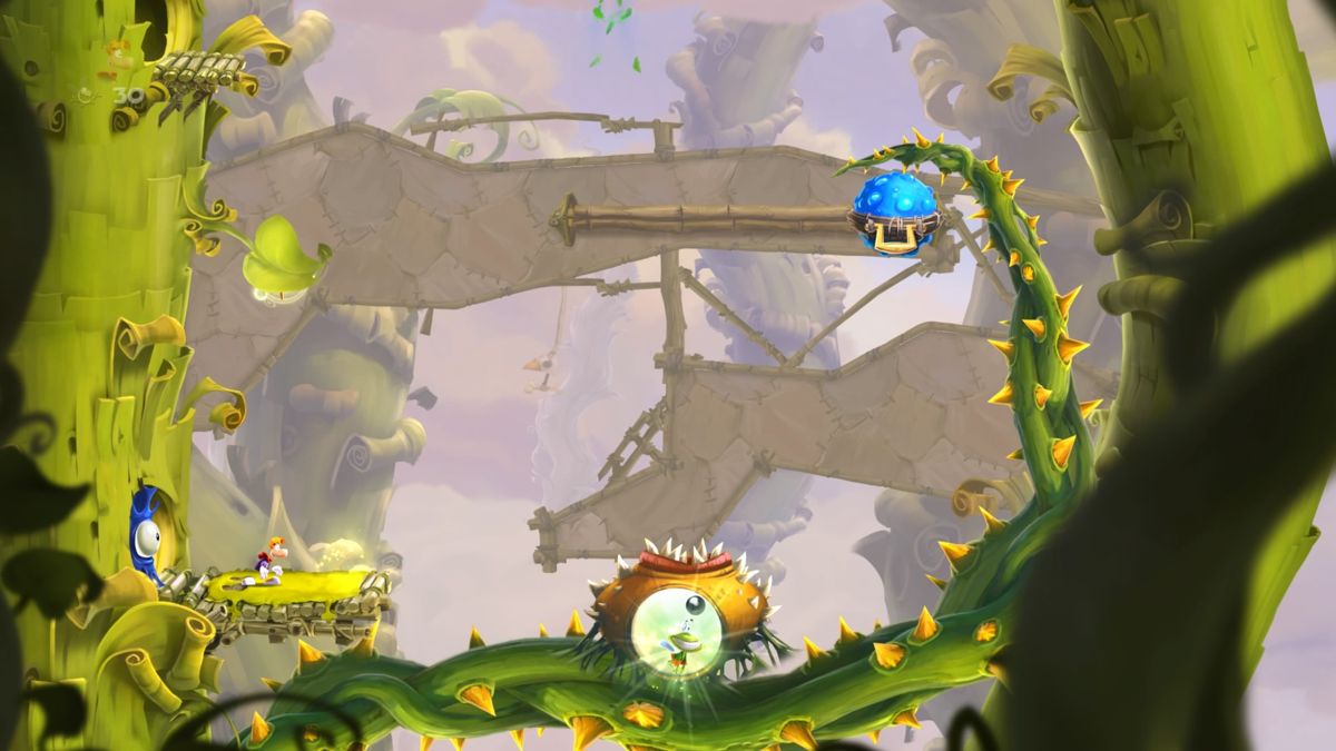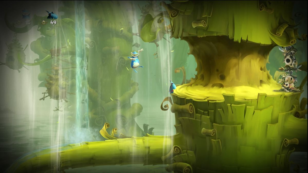 Niveau gameplay, prenez un genre classique, la plate-forme, genre qui a été usité un nombre incalculable de fois. On peut donc penser que rien ne peut plus bouleverser la donne. Et bien pour contrecarrer cet avis général, jouez à Rayman Legends ! La jouabilité est d'une précision diabolique et le moindre saut doit être millimétré sous peine que le moindre écart vous entraîne à coup sûr vers la mort. Vitesse et précision sont les 2 maître-mots du titre. Il vous faudra certainement réaliser plusieurs fois la même scène afin de réaliser le saut optimum, la trajectoire parfaite permettant de récolter un maximum de Lums. Car vous l'aurez compris ce Rayman reprend autant que possible les éléments (à succès) des opus précédents.