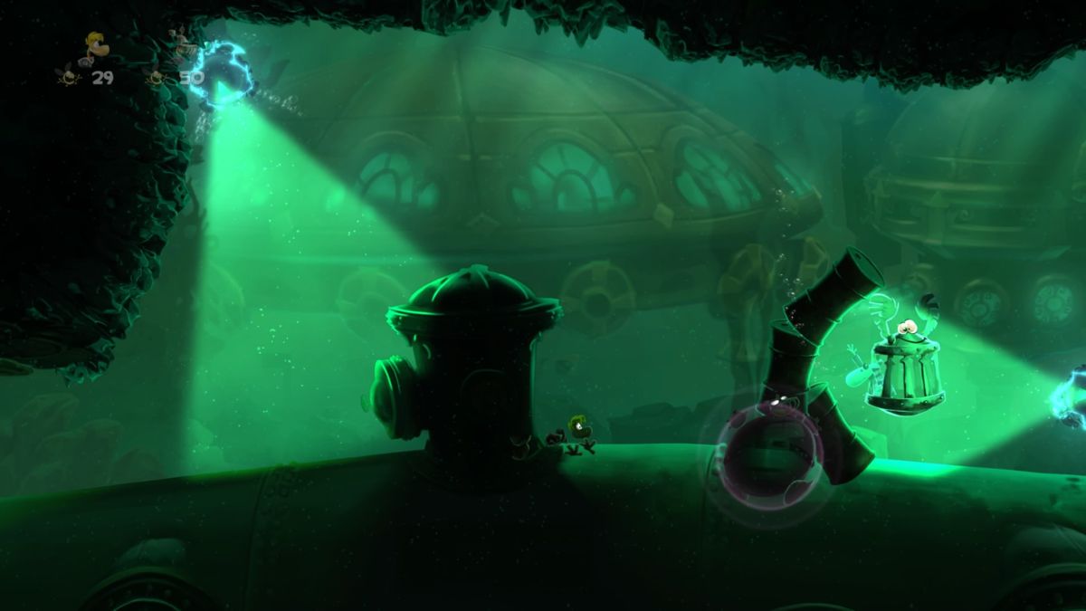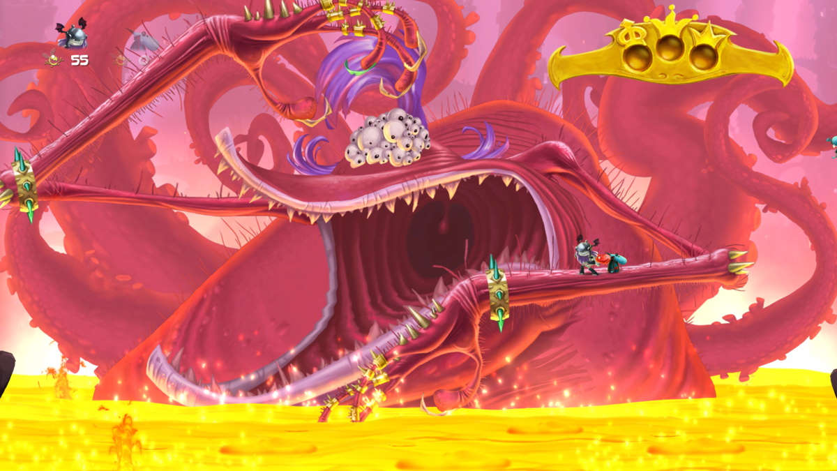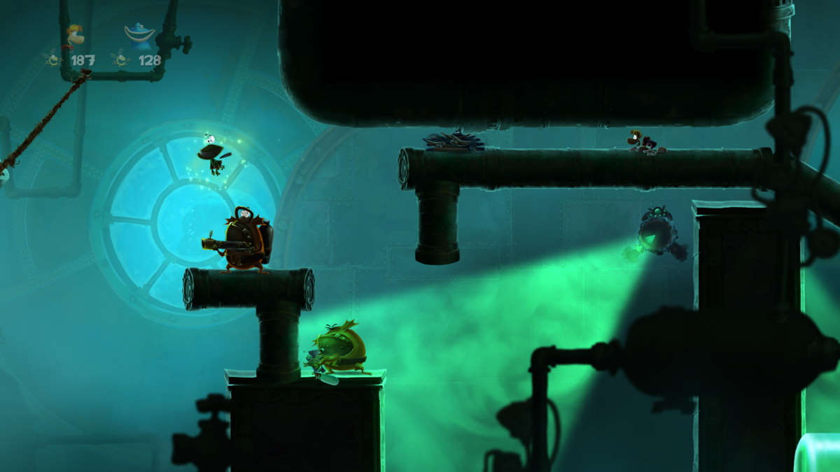 Si je devais prendre un exemple, j'évoquerai le boss appelé "le catcheur" : celui-ci est gigantesque et tout au long de l'affrontement il vous offrira de grands moments de fun, de frustrations aussi, et visuellement un moment épique, presque d'anthologie. Car les animations ne sont pas en reste et il n'est pas rare de chuter à cause d'un moment d'inattention dû à un décor ou à un personnage qui réagit de façon comique. Pour une fois on peut dire que tout est réussi visuellement : les graphismes, les décors, les différents chara-design, les effets de lumière ou pyrotechniques... bref, Rayman Legends est un must, une référence ! De plus, sur Wii U et Switch, vous pouvez y jouer en nomade ou sur la télévision, même si vous vous doutez bien que ce sont les versions les plus performantes (PS4, Xbox One et PC) qui s'accomoderont le mieux d'un grand écran.