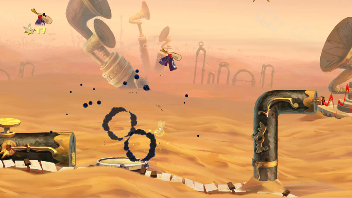 L'ambiance est loufoque, voire complétement barrée par moment et la bande-son porte admirablement cette atmosphère décalée dit Rayman Origins offre aussi beaucoup d'humour. Très second degré, loufoque voire même parodique, les mimiques sont vraiment fendardes et l'ambiance, décalée au possible, ne peut que plaire. Après comme je le disais, on retrouve les fondements de la série (ce qui n'est jamais un mal) ainsi que quelques nouveautés bien vues. Sur un plan purement technique, j'ai tout d'abord apprécié ces écrans de loading très sympas. Pour Rayman Origins, Michel Ancel et son équipe ont développés un tout nouveau moteur graphique : le UbiArt Framework. Bien qu'en 2D, tout jeu a besoin d'un moteur graphique et celui-ci est très performant ! Certes on ne parle pas d'un FPS monstrueux avec d'énormes machines de guerre, mais difficile de ne pas céder aux charmes de ce nouveau Rayman. En vue de profil donc, comme un jeu à l'ancienne, il est clair que l'équipe de développement a voulu renouer avec le premier Rayman.