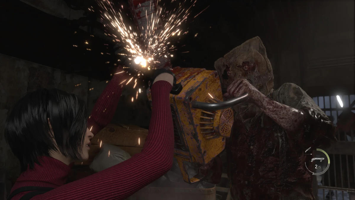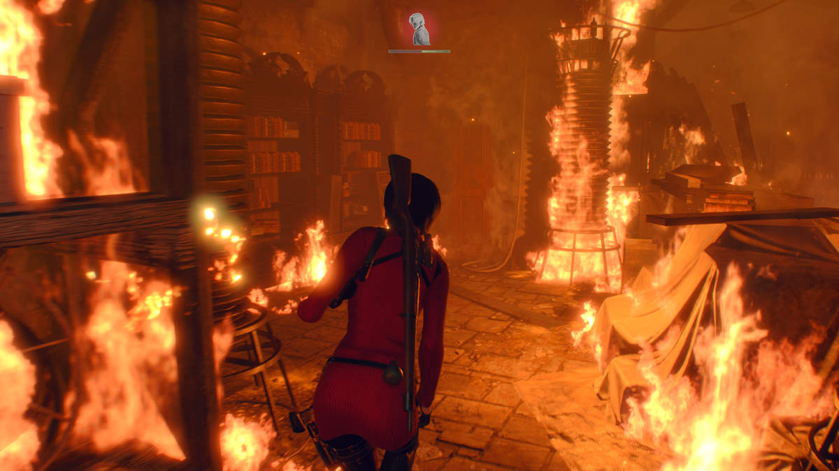Si Ada parait toujours aussi ambigüe dans ses intentions, peu à peu on comprendra qu'elle n'est pas aussi vénale et insensible qu'elle veut bien le faire croire. Equipée de son système IRIS, le dispositif lui permettra de connaitre quels points d'ancrage utiliser avec son grappin fétiche, ou encore suivre les pas de quelqu'un ou deviner quels chiffres taper sur un digicode. Pour tout le reste, le gameplay est à l'identique de Léon. Certes l'agent infiltrée sera capable de porter des coups au corps à corps grâce au grappin, mais au fond, on joue Ada exactement comme on joue Léon (d'ailleurs la plupart des animations sont les mêmes, comme lorsqu'on ouvre un coffre ou qu'on recharge son Red9). Question armement, elle n'aura pas accès à toute la panoplie, cependant elle jouira tout de même d'un bel arsenal avec plusieurs 9mm, fusil à pompe, sniper ainsi que l'inévitable mitraillette. La belle héroïne dispose de sa propre valise de transport et le jeu est suffisamment long pour qu'elle ait le temps de l'upgrader, en même temps que ses armes. Car oui, tout l'aspect crafting, confection et marchand répond à nouveau présent, la seule différence c'est que l'aventure d'Ada est 2 fois et demi moins longue, ainsi la courbe d'apprentissage est plus rude, notamment lorsque vous enchainez Separate Ways après avoir fini l'aventure principale.