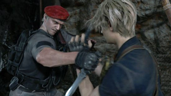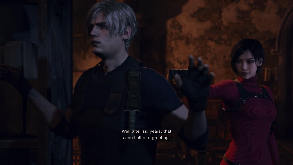 Le scénario de Resident Evil 4 n'a jamais volé très haut mais pour ce Remake, on apprecie quelques libertés et une écriture un peu plus travaillée apprécie également de retrouver Leon tel qu'on l'a laissé à la fin de Resident Evil 2. Il dispose du même modèle (à savoir le mannequin Eduard Badaluta) ainsi que de la même voix française (celle d'Anatole deBodinat, qui double entre autre James Franco). Après des Resident Evil 5, 6, 7, Village ou encore Revelations 2, où les protagonistes passaient leur temps à changer de voix, de visage et de physique, il semblerait que Capcom ait enfin compris leur erreur, et qu'il apporte enfin un suivi, une continuité de ses héros.