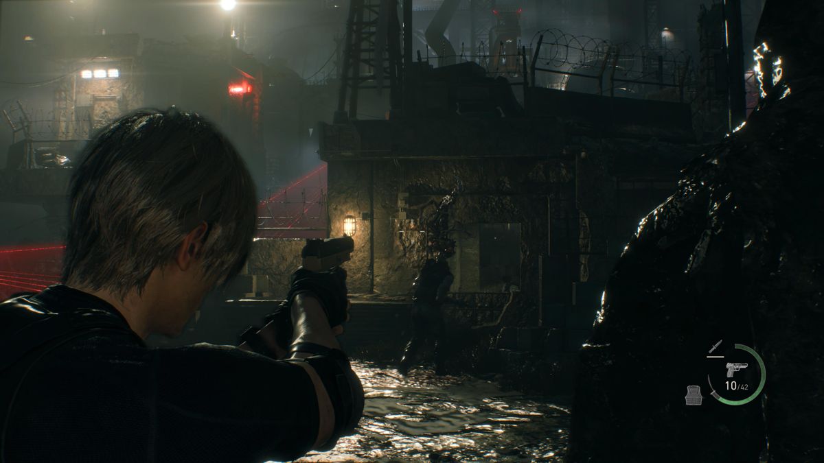 Comme on pouvait s'en douter, les fondements de RE4 répondent à nouveau présent : valise, armes upgradables, quelques rares QTEs, le couteau, etc... je ne parle pas des options graphiques car j'y reviendrai au moment adéquat, entre temps nous allons évoquer la jouabilité et le gameplay. Comme vous le savez sûrement, Resident Evil 4 a un pied dans le "survival horror" et un pied dans le "Third Person Shooter" (TPS). En gros, ça fait de lui un jeu d'action en vue à la 3e personne, dans un univers d'horreur. Même si c'est un Remake profondément modifié, cette version 2023 ne change pas du tout au tout et bien évidemment, même si on retrouve en grande partie la prise en mains instaurée par les Remakes de Resident Evil 2 et 3, les fondements même de cet épisode particulier répondent à nouveau présent.