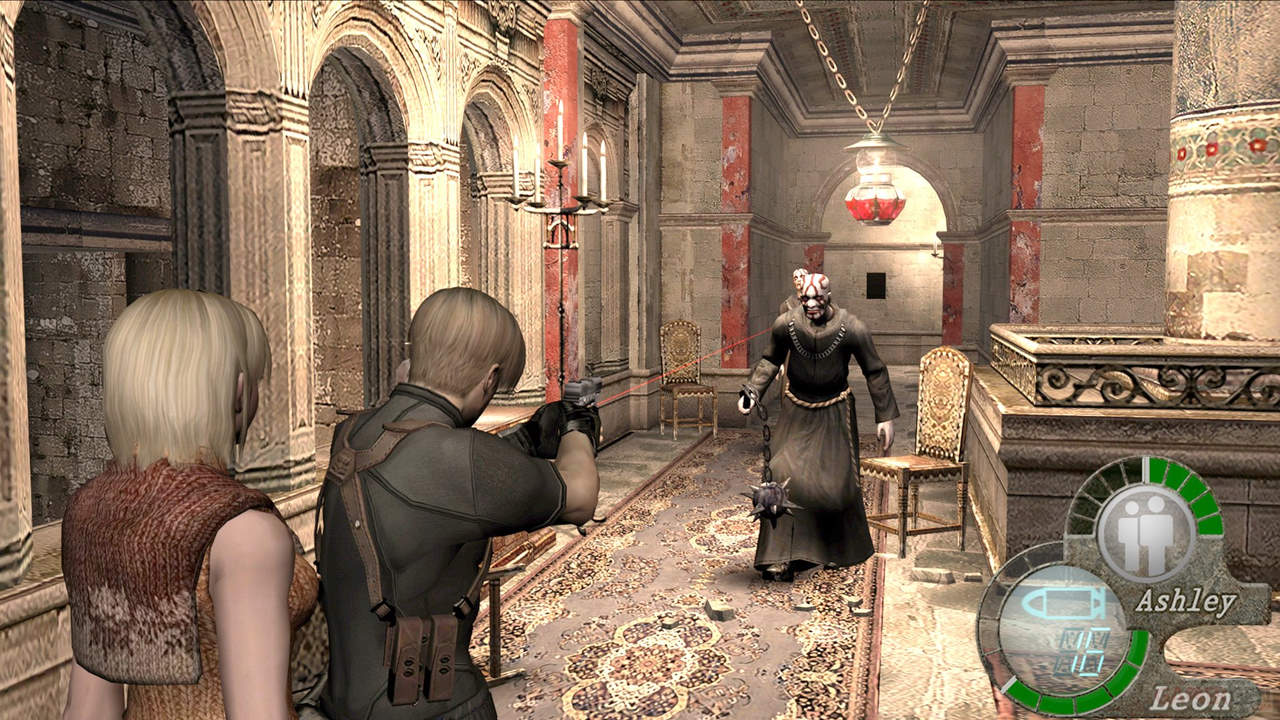 Nous avons enfin du 60 fps sur tous les supports. Ce second lifting donne le meilleur d'un RE4 qui (malheureusement) commence à vieillir retrouve donc le mode Mercenaries, devenu un classique de la série, le mode Assignment Ada où on jouera la belle en robe rouge pendant une courte mission de 1 heure, ainsi que l'excellent mode Separate Ways. Cet add-on, apparu avec la version PS2, nous offre 4 heures de jeu supplémentaires. On y joue encore une fois Ada, dans un scénario parallèle et imbriqué à celui de Leon. En somme chacune de ses apparitions, et chaque zone d'ombre du scénario initial, trouvera ici des réponses. Un bien bel ajout, qu'aujourd'hui on aurait payé en DLC à prix d'or (si cette version de Resident Evil 4 était initialement sortie sur cette génération... et c'est exactement ce que Capcom fera pour son Remake de 2023 !). A l'origine, Resident Evil 4 tournait sur un moteur graphique propriétaire qui à l'époque, ne portait pas de nom (c'était avant que ça devienne un outil markéting).