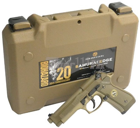 En 2016, la série des Resident Evil (appelé Biohazard au Japon) a fêté ses 20 ans d'existence, puisque le tout premier épisode est apparu en août 1996 sur PlayStation. Pour l'occasion, Capcom a organisé tout un tas d'événements. En premier lieu, sont sortis le Remaster HD de Resident Evil Zero, ainsi qu'une nouvelle compilation (la Origins Collection) où sont réunis les épisodes Zero HD et Rebirth HD sur PS4 et Xbox One. Sont ensuite sortis les Remasters HD des Resident Evil 4, 5 et 6 (toujours sur PS4 et Xbox One). Ils ont mis sur le marché des tas de goodies (T-shirt, étuis de téléphone, avatars, figurines, coque collector pour la PS4), ils ont lancé le jeu d'Arcade Resident Evil : Bio Terror (un shooter VR) et ils ont annoncé la sortie future de Resident Evil VII (qui verra le jour un an plus tard), ainsi que l'évocation d'un futur Remake de Resident Evil 2. Enfin pour terminer en beauté, le studio japonais a mis en vente une réplique air-soft du Beretta 9mm Samuraï Edge, qui équipe les membres des S.T.A.R.S (gentiment appelé le Tokyo Marui Biohazard 20th Anniversary Samuraï Edge). Autant dire que Capcom a dignement fêté les 20 ans de cette licence culte qui est tant appréciée par des millions de fans... nous les premiers !