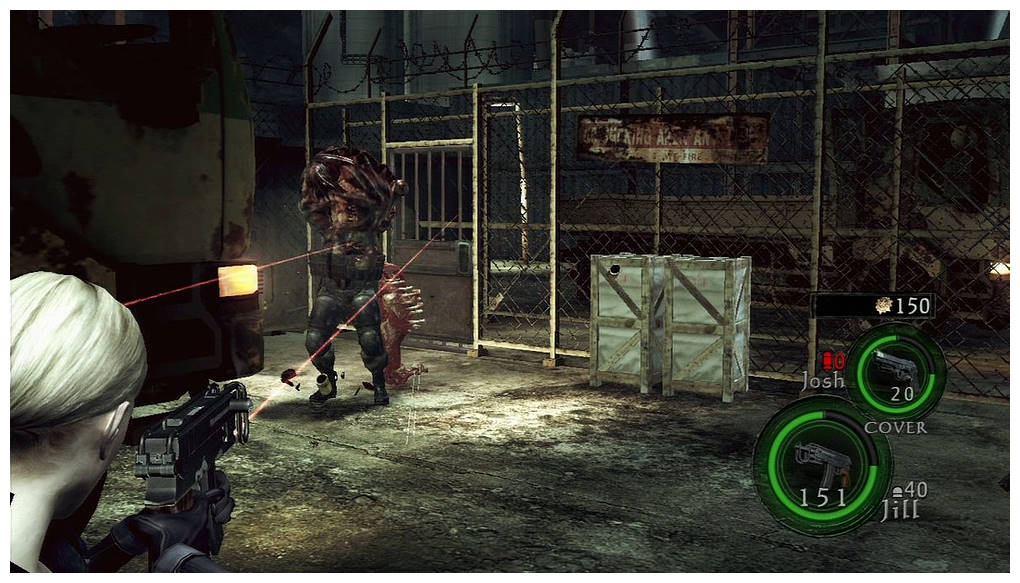 D'ailleurs les petites notes d'humour (de drague devrai-je dire), même si elles sont clichées (un black qui fantasme sur une fausse-blonde) sont les bienvenues. L'histoire nous conte donc l'aventure que Jill et Josh, dans cet espace-temps entre le moment où Chris laisse Jill, et où elle vient le chercher dans le cratère du volcan. Evidemment le scénario est mince comme une feuille de PQ coupée en 8, mais il y a plus de développement narratif que lors du premier DLC (comme par exemple la vidéo où Jill explique à Chris que Wesker est sensible au surdosage) et on a une superbe séquence de fin. Ça nous change un peu. Entre temps, il se sera écoulé un peu moins d'une heure, mais quelle heure ! Pas de sauvegardes, pas de pseudo-marchand, si on s'ennuyait lors de Perdu dans les Cauchemars, ici c'est du 100% action ! On n'a guère plus de 10 secondes de répit et comme les armes sont bien boostées, c'est un vrai plaisir de replonger en enfer. Les ennemis sont très nombreux et débarquent en nombre illimité (il ne sert à rien de vouloir tous les éliminer), ce qui va vous donner quelques pics de stress.