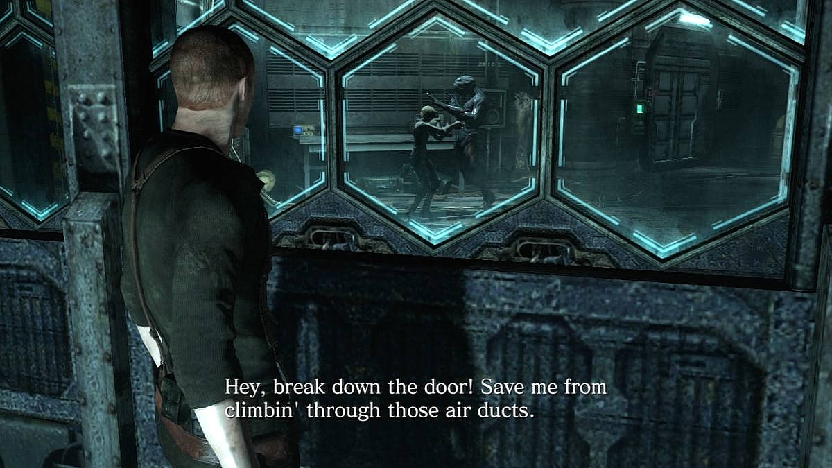 L'histoire n'est pas super intéressante mais c'est surtout les multiples comebacks des boss qui va vous gonfler ! dirai même que c'est souvent n'importe quoi : loi du "plus plus" oblige, le jeu cherche toujours à nous en mettre plein les yeux, au point que ça en devient ridicule, à l'image de ces boss qui reviennent d'entre les morts 4, 5 parfois même 6 fois ! Non seulement c'est débile mais en plus c'est pénible et répétitif. Bref, dans le fond l'aventure est composée de 3 binômes, dont les scénarios s'entrecroisent, et lorsqu'on a tout fait, on débloque le chapitre réservé à Ada (NDLR : depuis la sortie de la version PC, en mars 2013, toutes les versions ont été patchées et le chapitre d'Ada est accessible de suite). Le fait qu'il y ait des intersections scénaristiques nous rappelle évidemment Resident Evil 2, et nous propose une façon assez agréable de comprendre les tenants et aboutissants de tout ça.