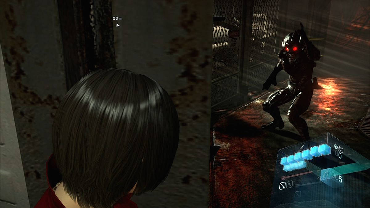 Dommage que les musiques ne soient pas meilleures. Par contre le doublage et les bruitages sont excellents... la Chine, l'Europe de l'Est, un cimetière, des ruines, une ville, un building, des sous-terrains, un pseudo-manoir chinois, un sous-marin... c'est étonnement varié ! Et puis il est clair que la réalisation fait des étincelles. Déjà évoqué, les modélisations sont de très bonne qualité et les animations sont particulièrement travaillées. Si en plein jeu on n'y fera pas vraiment attention, il faut reconnaitre que ce sont les cinématiques qui en profitent le plus (avec entre autre, de "vrais" cheveux, et pas des casques de Playmobil). Après c'est vrai, toutes les textures ne sont pas top niveau mais l'ensemble est flatteur pour nos yeux, d'autant que le nouveau bestiaire est vraiment fourni (avec des ennemis toujours plus crades) et que les effets sont particulièrement réussis. Mon ennemi préféré étant le zombie de l'épisode Leon/Helena, qui se disloque sous les balles : saisissant !