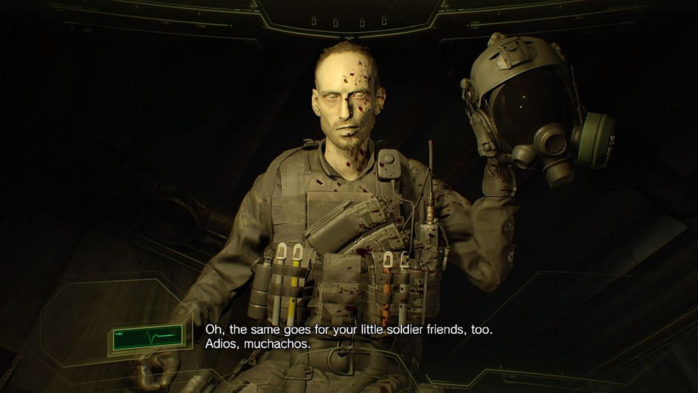 Not a Hero / Pas un Héros est sorti très tard, en décembre 2017 soit presque un an après l'aventure principale. On se souvient tous de la fin de Resident Evil 7 où Chris Redfield envoie à Ethan son flingue afin qu'il en finisse avec la grosse ABO qui l'assaille, puis il vient l'aider, le colle dans hélico et au revoir madame. Ceci dit Ethan dit quelque chose de très vrai : qu'est-ce qu'il foutait depuis tout ce temps ? Imaginez qu'on voit les hélicos passer longtemps avant le boss final, on entend même des militaires discuter entre eux. Il est donc clair que Chris Redfield et son équipe étaient sur les lieux bien avant ce faux sauvetage ("faux" car on a fait tout le boulot, et eux débarquent les mains dans les poches).