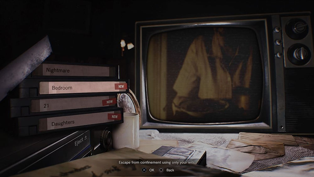 Dans le chapitre "La Chambre", nous jouons Clancy, séquestré par Marguerite, la mère de la famille Baker. Dans cette cassette, comme on en a déjà vécue plusieurs dans RE7, le caméraman est enfermé dans une chambre et doit trouver un moyen de s'échapper. Rappelant le fameux anniversaire que nous prépare Lucas durant l'aventure principale, on doit déjouer un "escape game" (un puzzle grandeur nature), une formule haute en stress car Marguerite guète chaque bruit suspect. Et si vous vous faites capter, ce sera l'interrogatoire et qui sait, peut-être même l'heure du dîner (et vous vous souvenez sûrement ce que les Baker mange à table, pas vrai ?).