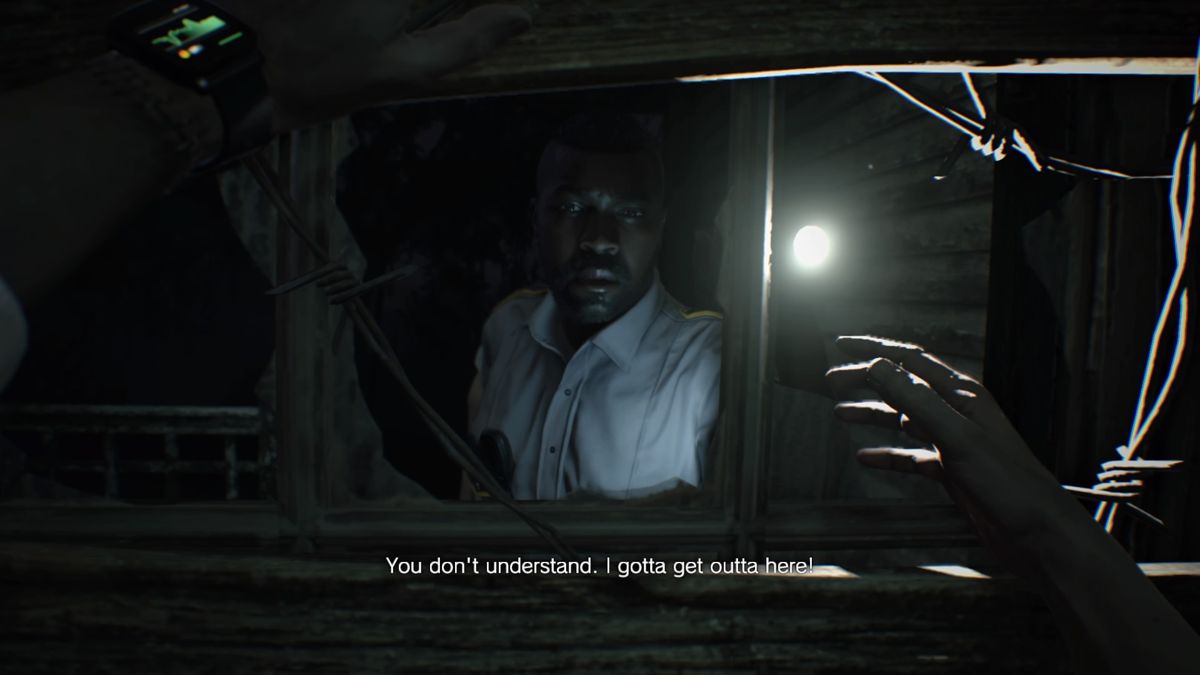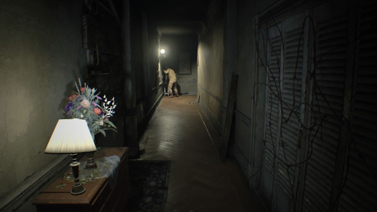 Cependant, le jeu est loin, très loin d'être un FPS. Se rapprochant plus d'un Outlast, le début de l'aventure est même très poussif. Il faut dire qu'Ethan n'est pas un sportif et même si son ombre le suggère, en réalité lorsqu'il court il ne fait que "marcher un peu vite" (même ma grand-mère va plus vite que lui !). C'est d'autant plus flippant lorsqu'on a la mort aux trousses (!) et voir ce prolo trainer ainsi la patte, peut vite énerver. Et c'est un fait, Ethan débarque chez les Baker à la recherche de sa femme sans rien dans les poches, même pas un couteau !
