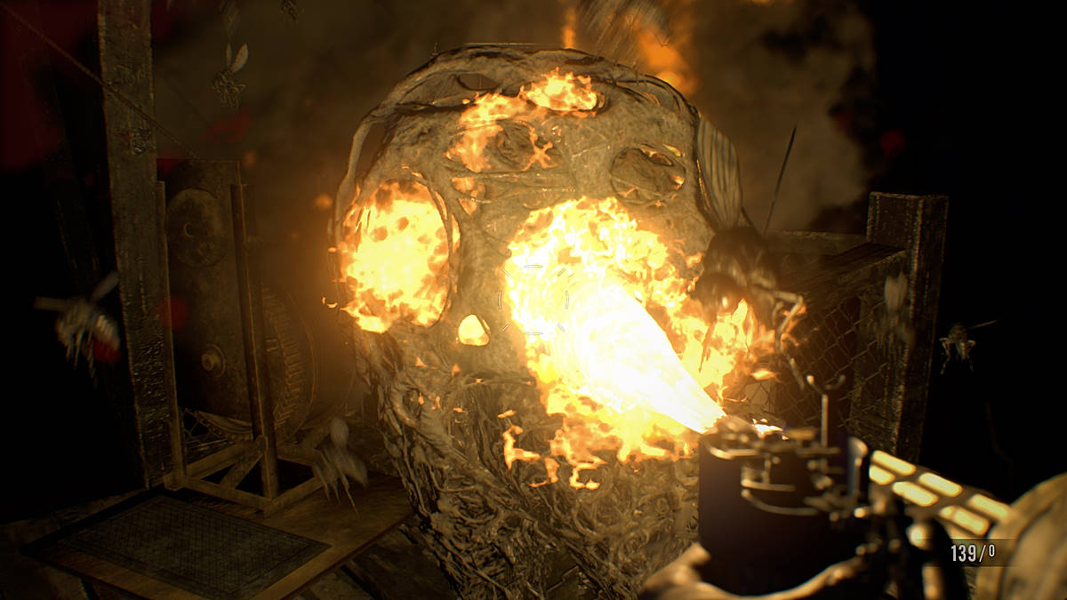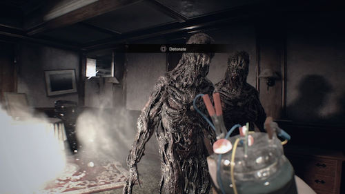 Les enigmes sont originales... dommage qu'elles soient si rares l'aventure, il y aura plusieurs objets à scruter... inutilement. Pourquoi faire ? Je suppose que Capcom a fait en sorte qu'on puisse regarder certains objets sous toutes les coutures mais qu'au dernier moment, au gré des changements durant le développement, les-dits objets n'avaient plus d'utilité mais ils ont laissés ça tel quel. C'est un peu idiot mais pas pire que ces placards et autres tiroirs qu'on ouvrira pour ne rien y trouver. C'est très frustrant, surtout lorsqu'on manque de munitions (avec un peu de recul, il faut avouer que cette touche de réalisme n'est finalement pas si désagréable). Autre détail : on voit (encore une fois) que ce RE7 n'est pas un FPS avec par exemple une arme qu'on ne peut pas prendre en mains si elle n'est pas placée sur un raccourci (ce qui est parfaitement ridicule), des objets qu'on ne peut pas combiner à la volée ou absorber directement (comme les plantes vertes)... il faut d'abord que ça "rentre" dans l'inventaire ce qui est aussi pénible qu'illogique.