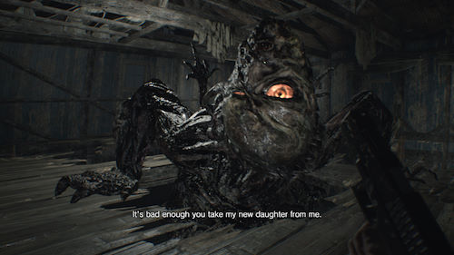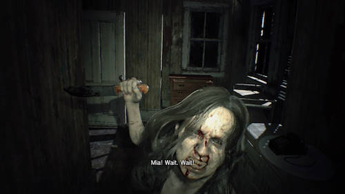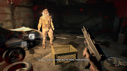 Si le début de l'aventure est poussif, par la suite les choses s'améliorent mais on reste loin d'un pur FPS badass plus que le casting de notre VF n'est pas mauvais du tout : Ethan est doublé par Damien Ferrette (qui est un gros doubleur ciné/TV), Jack Baker est doublé par Martial Le Minoux qu'on ne présente plus (gros doubleur de jeu vidéo, et entre autre du Professeur Layton), Lucas Baker est doublé par Jérémy Prévost et on retrouve aussi les voix de Jessica Monceau (pour Zoé) et Boris Rehlinger (pour Chris Redfield). Bref, du beau linge pour un travail voxographique de qualité, et pas besoin de vous préciser que même s'il n'avait pas été à la hauteur, je préfère quand même ça que de lire des sous-titres. Fort heureusement ce n'est pas le cas, et vous allez pouvoir vivre cette aventure horrifique, sans rien pour vous casser l'immersion. Comme évoqué, Capcom a voulu réinviter sa série, ce qui explique en premier lieu l'utilisation d'une vue subjective.