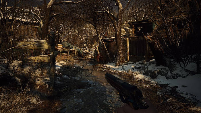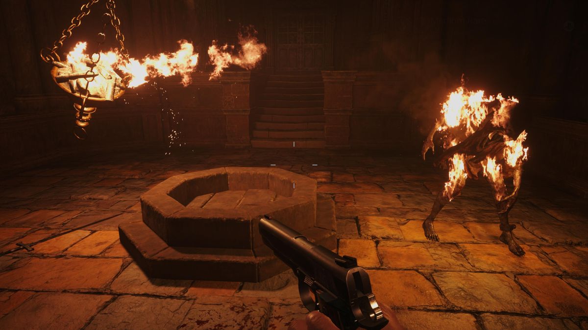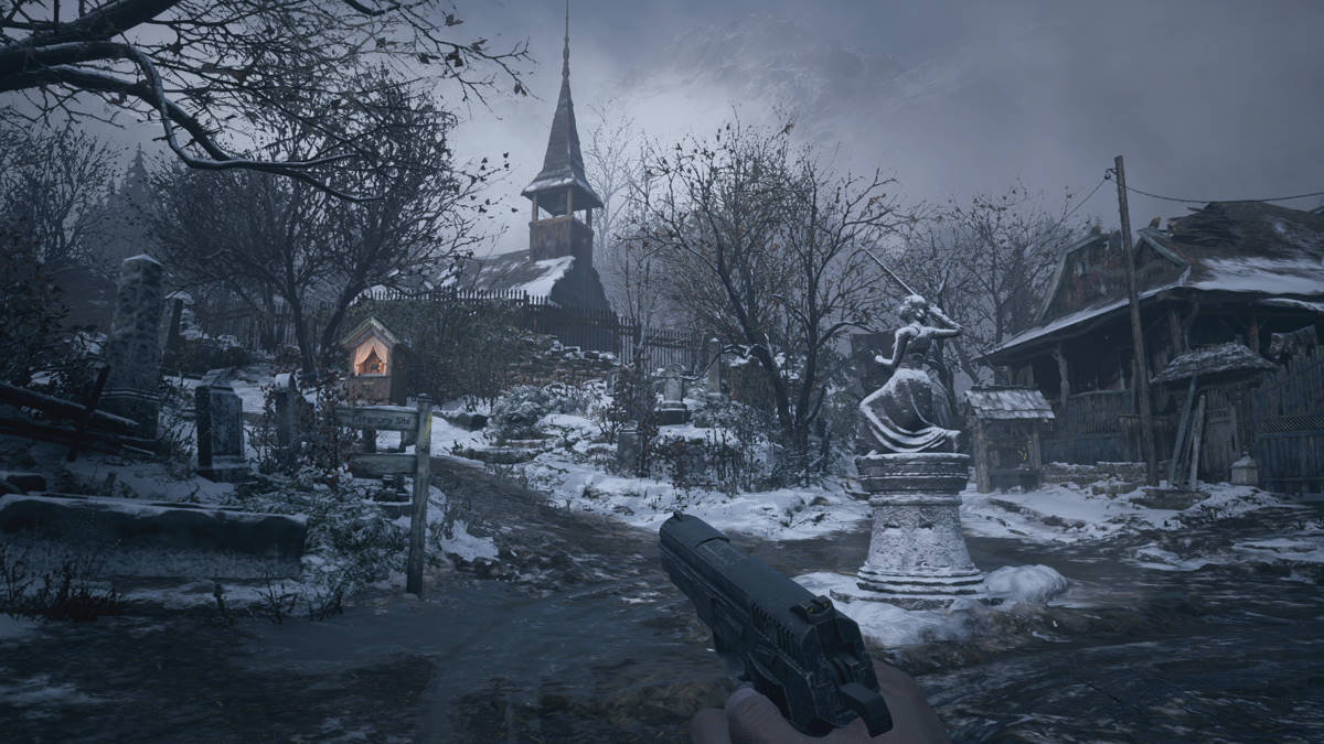 Le début de l'aventure est vraiment frustrant, difficile, angoissant... heureusement les choses changent en arrivant au chateau passons, Resident Evil Village se présente une nouvelle fois sous la forme d'un FPS. Bien entendu ce n'est pas un FPS au sens strict du terme puisque nous sommes très loin d'un DOOM, d'un Borderlands ou d'un Far Cry. Disons juste que c'est un survival horror / action teinté d'exploration en vue subjective. Ainsi donc nous retrouvons la fameuse vue FPS qui a tant fait parler d'elle lors de la sortie du 7e épisode. Sans que ce soit mis en avant, l'aventure est chapitrée avec en premier lieu, l'arrivée dans le fameux village qui n'est pas sans rappeler celui des glaiseux de Resident Evil 4. D'ailleurs si cette première phase de jeu est aussi difficile, voire même frustrante (puisque nous n'avons clairement pas les moyens de nous défendre) c'est parce que Capcom a voulu recréer ce sentiment d'impuissance que nous vivons au début de RE7 (où on est obligé de se cacher pour échapper aux Baker, cette famille de fous furieux).