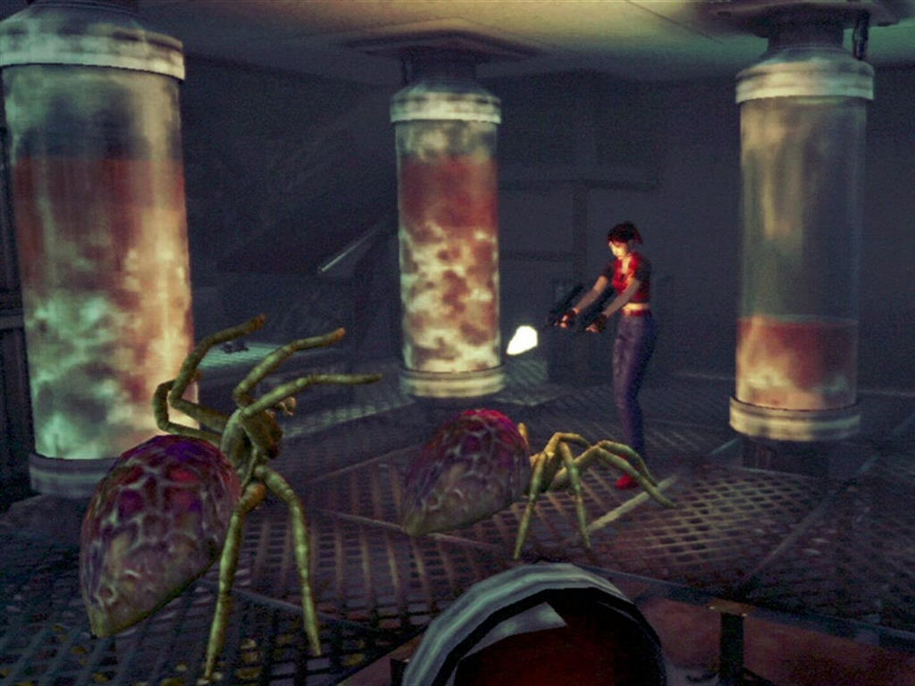 Car comme à son habitude, le studio n'a fait aucun effort pour actualiser son rendu son GameCube. Souvenez-vous, en début d'année 2003, Capcom a adapté les Resident Evil 2 et 3 de la PlayStation à la GameCube, sans rien changer ! Sur une console aussi performante, se retrouver avec les modélisations d'antan, franchement ça la foutait mal. Et c'est durant l'été 2003 que Code Veronica débarque sur la console de Nintendo, et ce, avec un substantiel retard. Imaginez bien qu'à la sortie de cette version, le jeu a déjà 3 ans et demi ! Aujourd'hui, avec nos jeux qui stagnent et qui passent d'une génération à l'autre sans problème, on trouve ça normal mais au début des années 2000, tout allait beaucoup plus vite. Pour tout vous dire, à la sortie de cette édition GameCube, en août 2003, Resident Evil Rebirth et Zero sont déjà sortis (en exclusivité GameCube justement) et techniquement, ils éclatent la rétine !