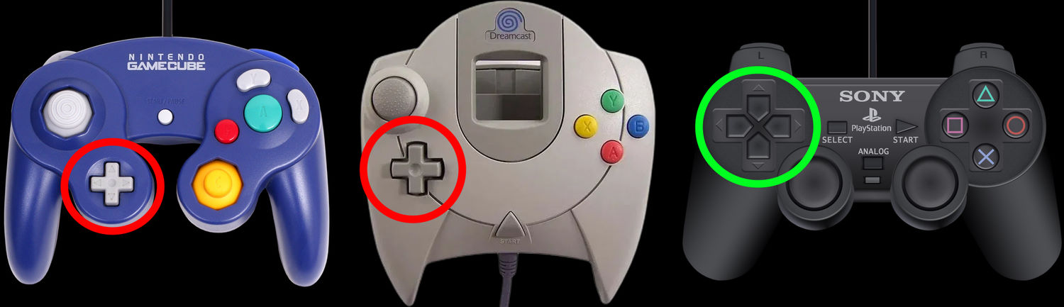Qu'on ait nos petites préférences n'y changent rien, jouer à Code Veronica sur DreamCast et GameCube est désagréable parce que la croix est mal placée, le pouce est dans une position inconfortable. Au contraire, avec la DualShock 2 de la PS2, la croix est idéalement positionnée