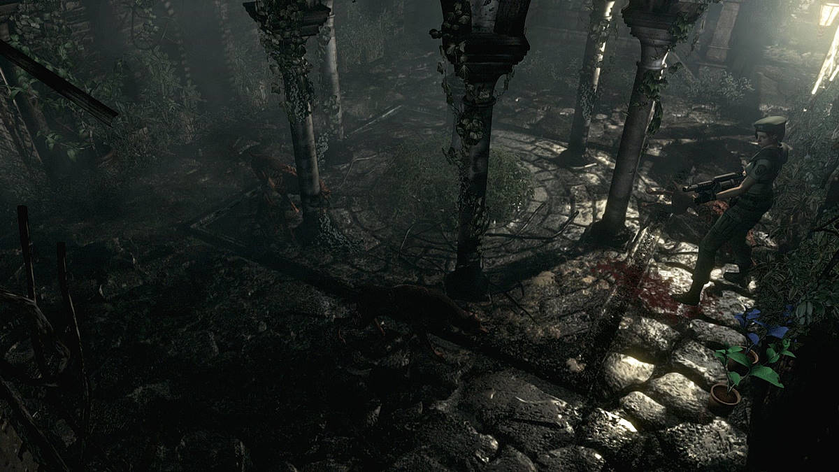 Déjà sublimes sur GameCube, les graphismes ont été admirablement liftés en HD, rendant le jeu plus beau que jamais ! en revenir aux séquences de portes qui s'ouvrent, si autrefois (comprendre à l'époque des consoles 32-bits) elles se justifiaient (le jeu chargeait ses données en arrière-plan), aujourd'hui Resident Evil HD Remaster profite naturellement des disque durs de nos machines, et donc de taux de transferts bien plus véloces qu'en 1996. Il aurait donc été vraiment agréable que Capcom supprime ces transitions parfois longuettes et pénibles, au profit d'un jeu plus vivace. D'autant que techniquement ce n'était pas irréalisable puisque notre personnage monte les escaliers sans chargement... Si maintenant vous mettez ça sur le compte de l'ambiance et du respect de l'oeuvre originale, ma foi, vous n'auriez pas tort non plus. Au niveau de la suggestion de la peur et conscient que d'anciennes ficelles marchent toujours mais qu'il fallait les renouveler, Capcom nous refait le coup du sursaut avec quelques surprises de taille, au détour de certains couloirs sombres. Si ce n'est pas très bon pour le coeur, c'est par contre excellent pour l'ambiance !