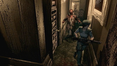 Autre évolution et non des moindres : les zombies revivent ! Lorsque vous leur videz un chargeur de 9mm dans le buffet et qu'ils meurent, il faut aussitôt brûler les corps sous peine d'une renaissance : ce sont les fameux "crimson" ! Loin d'être anodin, lorsqu'ils revivent ils sont terriblement rapides et assoiffés de sang ! Autant jouer au barbecue avant, même si les réserves de kérosène s'épuisent vite. De plus, il ne sera pas rare de se retrouver nez à nez avec un zombie qui aura ouvert une porte ou monté un escalier. Pour ce qui est de la durée de vie, elle oscille aux alentours de 10 à 12 heures par personnage. En effet, on peut toujours choisir de jouer Chris ou Jill. D'ailleurs, si beaucoup jouent avec Jill, il est intéressant de se faire un 2e run avec Chris tant le cheminement est différent.