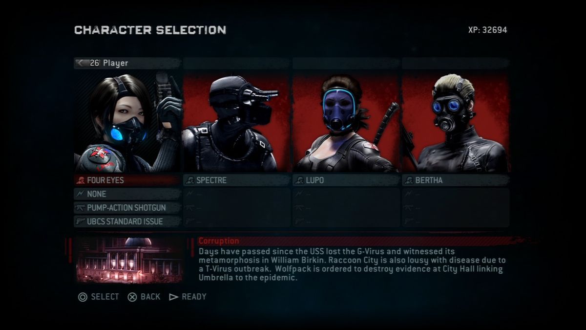 Les mercenaires vous les connaissez bien et le plus célèbre d'entre tous est évidemment Hunk (le mec avec un masque à gaz qu'on voit un peu partout depuis le second opus, notamment dans les modes annexes). Mercenaires qu'il ne faut pas confondre avec l'UBCS, une SMP appartenant à Umbrella mais qui reste dans les limites de la loi, elle, et dont fait parti Carlos Oliveira. Evidemment, pas besoin de préciser que se balader dans les rues de la ville durant cette période-là est vraiment dangereux puisqu'il traine des Mister X (les gars invincibles en longs manteaux), un Nemesis, des lickers et tout un tas de zombies prêts à vous sauter à la gorge. Ainsi vous l'aurez peut-être compris, ici il n'est pas question d'ambiance et de trouillomètre mais bien d'action. Pourtant Resident Evil n'a jamais vraiment fait bon ménage avec l'action et le multi-joueurs...