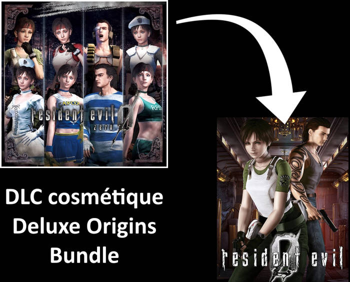 Alors comme toujours, sur les supports autres que l'arnaque-Switch, chaque jeu est disponible séparément au prix de 20€, mais vous pouvez aussi opter pour l'édition physique à 40€. Originellement apparue en janvier 2016, Capcom avait également proposé 8 packs de costumes pour Resident Evil Zero, mais en mars de la même année (à peine 2 mois plus tard) Capcom a sorti une révision de son offre sous le nom de Resident Evil : Deluxe Origins Bundle, qui pour le même prix (40€) inclus tous ces DLCs vendus à prix d'or (3€ pièce ou 10€ la complète, c'est franchement abusé).