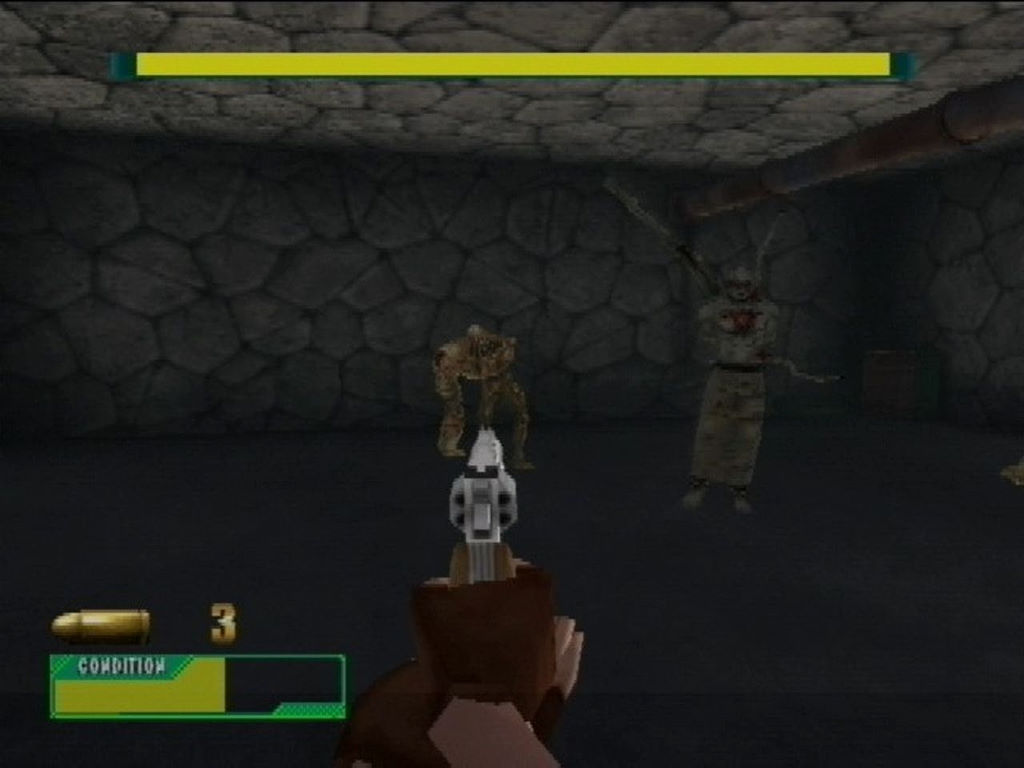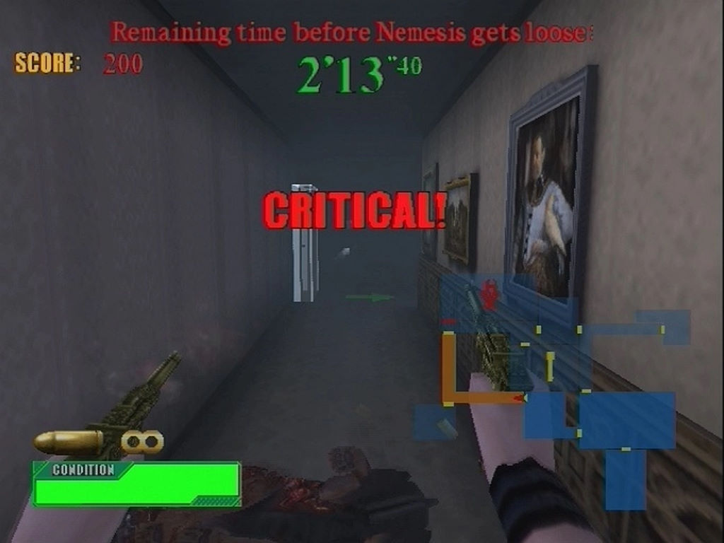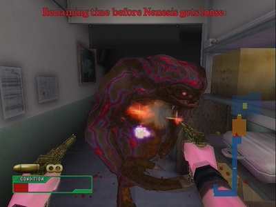 Notez également que vous pourrez débloquer diverses armes (certaines ne sont disponibles que pour certains modes) ainsi que les personnages de Chris et Rodrigo. Le premier utilise un laser-gun, quand le second ne dispose que d'un couteau (autant dire que là, la difficulté devient hardcore). Globalement le jeu reprend tout le bestiaire des précédents épisodes (Hunters, Lickers, zombies, araignées géantes...) et on explorera les lieux bien connus du mythique Code Veronica. Bien sûr le jeu est agencé différemment, afin de mieux s'accommoder au genre. Les armes aussi ont été reprises du survival horror (fusil à pompe, Uzis, AK-47, Magnum) et globalement les sensations sont assez bonnes. En fait, c'est surtout l'aspect technique qui pêche dans ce spin-off car les graphismes sont vraiment vilains, simplistes au possible. Et si on retrouve bien l'ambiance d'un Resident Evil en vue à la première personne, il faut savoir que Capcom n'a même pas fait l'effort de mettre des voix à ses protagonistes (c'est juste sous-titré).