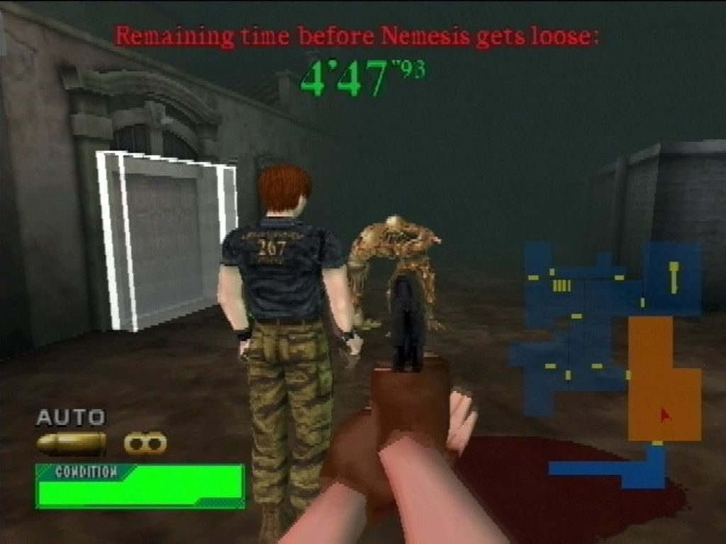 Bref, ce n'est pas un cabinet top qualité et remarquez ça se comprend, puisque le jeu est loin d'être un modèle du genre. Le Time Crisis II de Namco (sortir en 1998) ou encore l'excellent House of the Dead III de SEGA (sorti en 2000), lui sont largement supérieurs, tout en étant bien plus répandus. Même si le jeu d'Arcade aura eu son bout de succès, sans doute porté par l'aura de la licence et la curiosité des fans (il faut dire que même s'elle était déjà sur le déclin, l'Arcade marchait encore pas mal à cette époque-là), le voir arriver à son tour sur PlayStation 2, fut assez surprenant. A l'origine le jeu devait être porté sur DreamCast (puisque les systèmes NAOMI et la console DreamCast sont basés sur le même hardware, afin de faciliter les conversions), mais vous le savez, c'est en mars 2001 que SEGA a jeté l'éponge, et a quitté le dur combat des consoliers pour uniquement devenir développeur/éditeur de jeux. Résultat Capcom s'est tourné vers la solution bis, celle-là même qui a fait plonger SEGA, j'ai nommé la PlayStation 2.