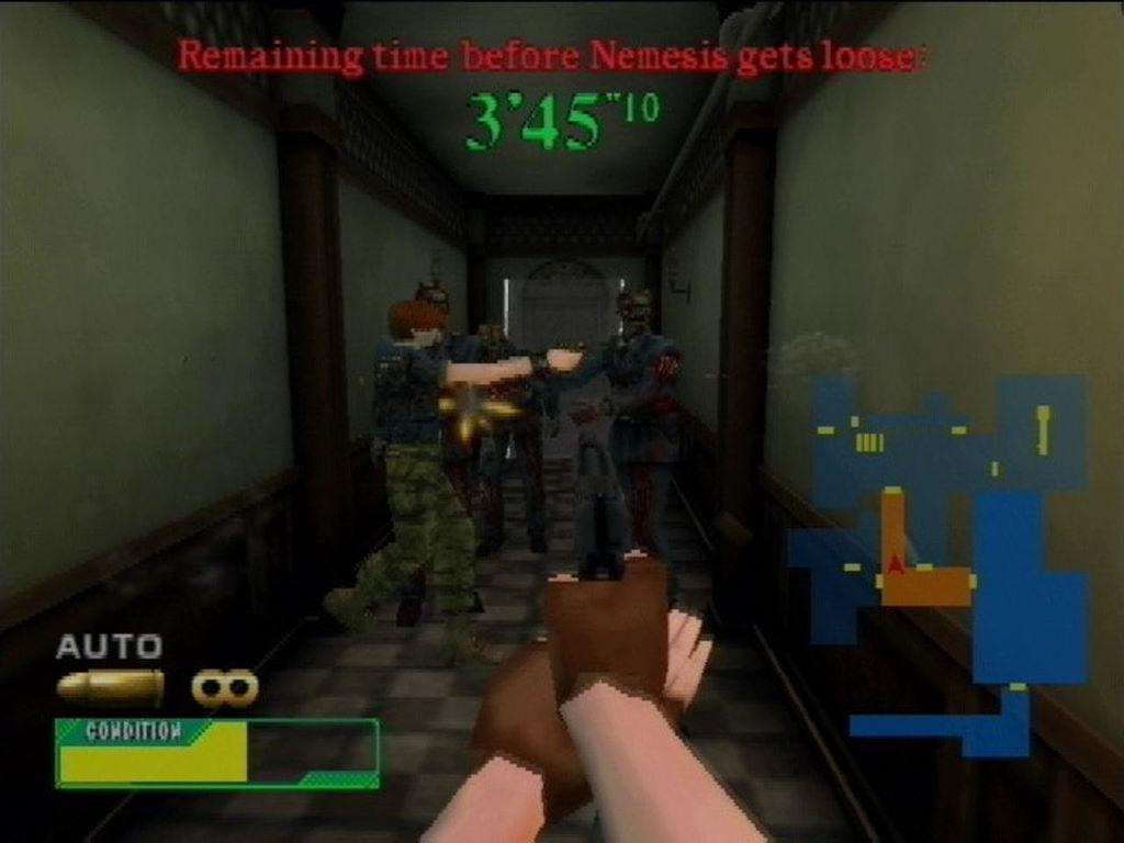 Il y a le mode Arcade, qui se calque sur l'aventure d'origine et qui nous propose 5 stages pour une durée de vie d'environ 45 minutes. Dans ce mode Arcade, pour terminer un niveau, vous devez trouver la clé permettant d'ouvrir la pièce du boss, que vous devez ensuite vaincre. Lorsque la jauge de vie de votre personnage atteint zéro, la partie se termine, il faut donc trouver des trousses de premiers soins pour rétablir votre vitalité. Si le compte à rebours atteint zéro, Nemesis (qui n'apparait pas dans Code Veronica mais on n'est plus à un anachronisme prêt) apparaît et se lance à votre poursuite. Vous ne pourrez pas lui infliger de dégâts, et ne pourrez que tenter de lui échapper qu'en courant.