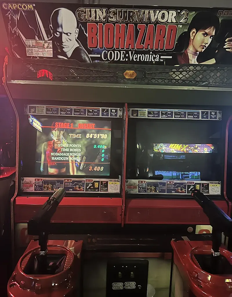 A peine 1 an et demi plus tard, Capcom remet le couvert en évinçant le brave studio TOSE et en engageant le trio Namco, Nextech et SIMS Co (et oui, encore une fois le jeu n'est pas développé en interne). Alors que le superbe Resident Evil : Code Veronica voit le jour en février 2000 (au Japon) sur DreamCast, cette fois c'est cet épisode mythique qui servira de base pour construire ce nouveau rail-shooter. Survivor 2 voit d'abord le jour sur Arcade en juillet 2001, soit à peine 4 mois après la sortie de Code Veronica X, le portage upgradé de la PlayStation 2, support où il trouvera à la fois un second souffle ainsi qu'un plus large public. Et aussi étrange que ça puisse paraitre, Capcom et ses associés vont développés leur jeu de tir sur la base de cet opus-là, un épisode très apprécié des fans. Survivor 2 est donc un jeu d'Arcade, qui tourne sur le système SEGA NAOMI, un hardware réputé pour ses performances et sa fiabilité.