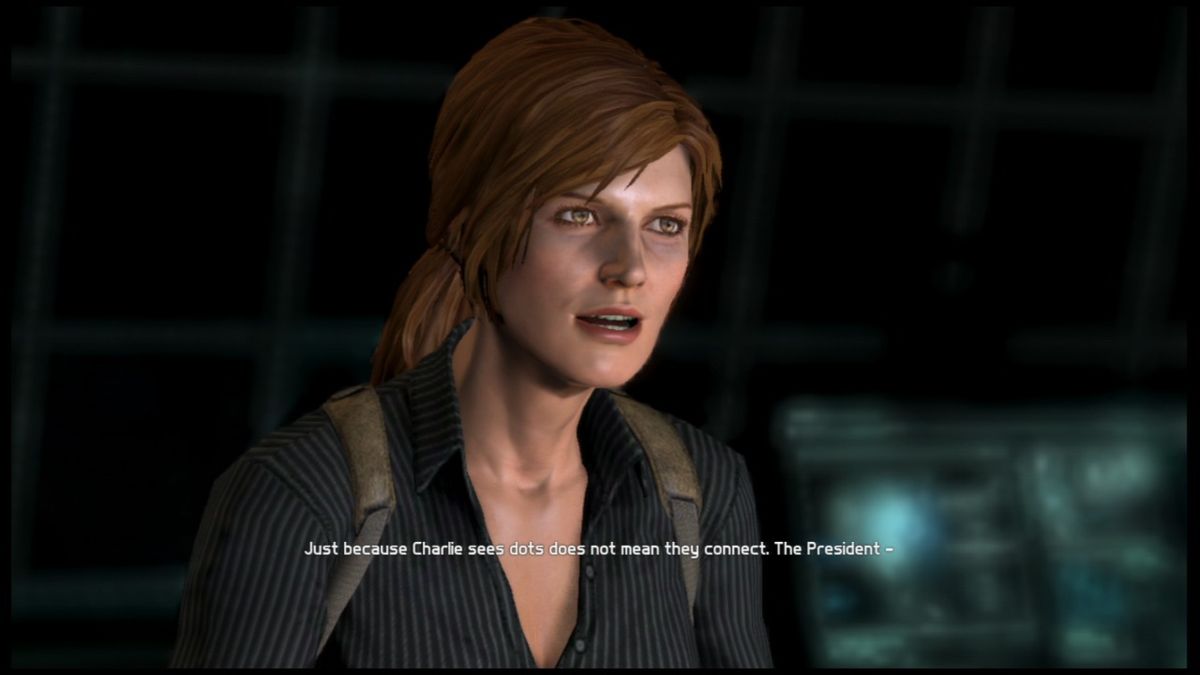 Vu qu'il n'existe plus de notice dans nos coûteuses boites de jeu, il y a un dossier "in game" qui détaille chaque élément, chaque objet du jeu, le passif de la série et des principaux personnages. De quoi rattraper son retard, même s'il serait absurde de découvrir la licence des Splinter Cell avec cet épisode-ci. La mise en scène se fait uniquement via des cut-scenes gérées en temps réel (on le voit parfaitement à l'armement choisi et aux modifications de la combinaison de Sam) et de bonne qualité. On apprécie par ailleurs une synchro labiale le plus souvent respectée, ce qui reste rare, même de nos jours. Par contre on sera beaucoup moins ébloui par l'écriture... Si le nom du père Clancy est sur la boite, comme à chaque fois ce n'est pas le romancier qui a écrit le scénario (par ailleurs il décédera à peine 2 mois après la sortie du jeu). Bref le scénario est un peu téléphoné et sans grande surprise. A noter aussi que les modélisations ne sont pas bien folichonnes.