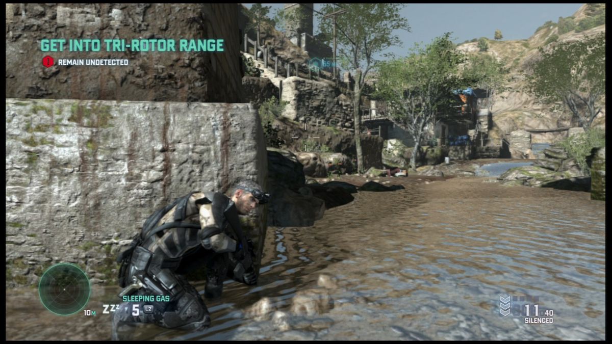 Sur Xbox 360, Kinect permet d'activer certaines commandes vocalement... mais je dis juste ça à titre indicatif (moi je ne souille pas l'une de mes consoles préférées avec ce "truc" :). L'aventure se déroule en 2 temps : les missions principales et les missions secondaires. Si les missions principales sont relativement abordables (malgré quelques pics de difficulté qui nous forcent à reprendre un certain nombre de fois un même passage - c'est un peu chiant à la longue), au contraire les objectifs secondaires sont souvent hardcores ! En 3 exemples, soit le moindre faux-pas nous fait reprendre la mission du début, soit il faut survivre à 5 vagues d'ennemis dans des phases orientées TPS (alors que le jeu n'est pas vraiment taillé pour ça) ou encore, à chaque fois qu'on est découvert, l'alarme est sonnée et 10 nouveaux ennemis apparaissent alors qu'il faut nettoyer la map.