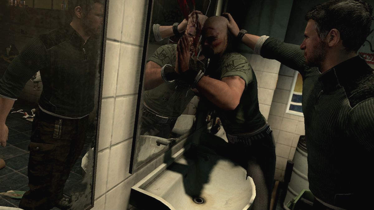 Le dépot permet de faire le plein de munitions, d'upgrader ses armes et bien entendu, de choisir son arsenal même, la qualité de la narration n'a plus rien à voir avec le passif de la série et même s'il a mis beaucoup de temps à voir le jour, la mise en scène a de la gueule. Il suffit de voir comment Fisher interroge ses captifs (avec diverses interactions, qui changent selon le décor et selon comment on se positionne) pour se dire que beaucoup de choses ont été modifiées. Désormais plus mature et plus violent, les interrogatoires sont particulièrement brutaux, ça pisse le sang, on éclate le décor avec la tête du gars, on lui pète un bras... non vraiment on sent que Sam a la rage et c'est très bien retranscrit à l'écran. Et il est vrai qu'avec Conviction, on peut légitimement se demander si on joue encore à un Splinter Cell. Fini la belle époque où on prenait tout son temps et où on sauvegardait tous les 2 mètres, désormais le jeu est bien plus nerveux et sauvegarde automatiquement.