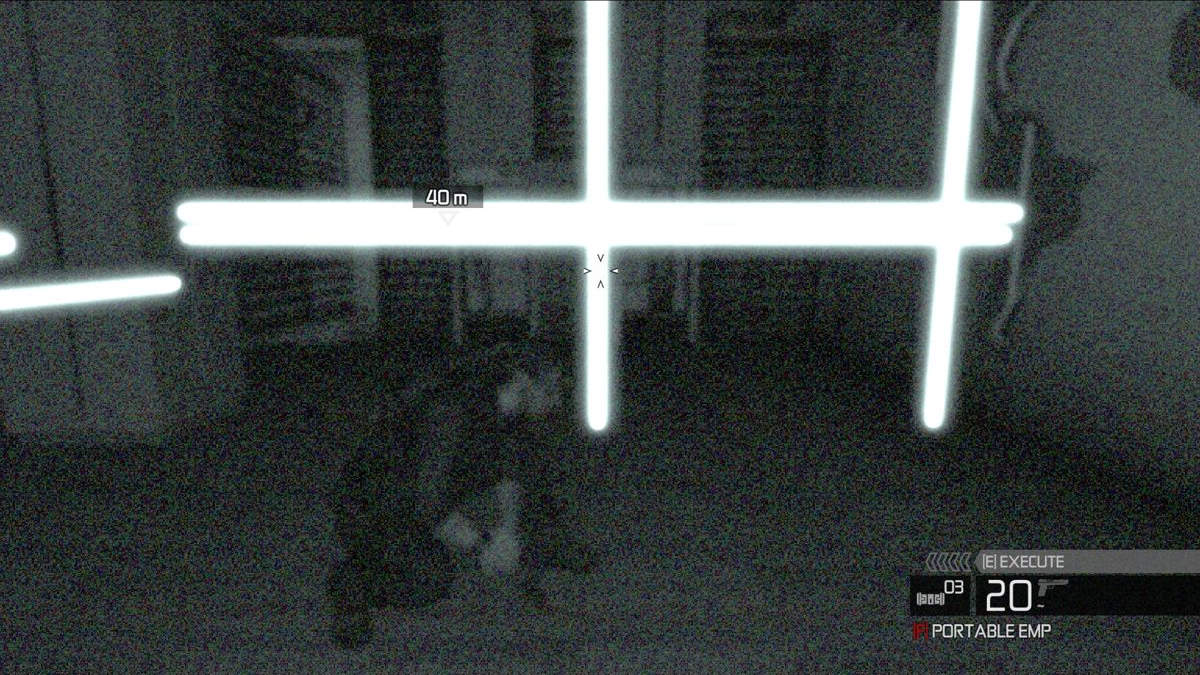 Sam peut porter 2 armes, des gadgets ainsi que des grenades. Malheureusement j'ai 2 gros regrets à formuler. D'abord, il est vraiment dommage qu'on ne puisse pas reconfigurer ses touches (sur console) car c'est loin d'être idéal. Il faut dire que les vieilles habitudes ont la peau dure et si la touche [X] sert généralement à recharger, ici elle lance une grenade ! On recharge sur L3, ce qui est loin d'être confortable, se lever/se baisser est positionné sur LB et comme d'habitude, le mode visée de précision est sur R3, ce qui là aussi, n'est pas pratique. Bref, la configuration est loin d'être optimale mais ce n'est pas le pire. En effet, dans (presque) tous les jeux on peut modifier la sensibilité du stick de visée, sauf dans celui-ci ! Alors il est vrai qu'on s'en accommode mais à cause de ce manquement, il est clair qu'on trouve le jeu assez imprécis, là où justement, il réclame pas mal de dextérité.