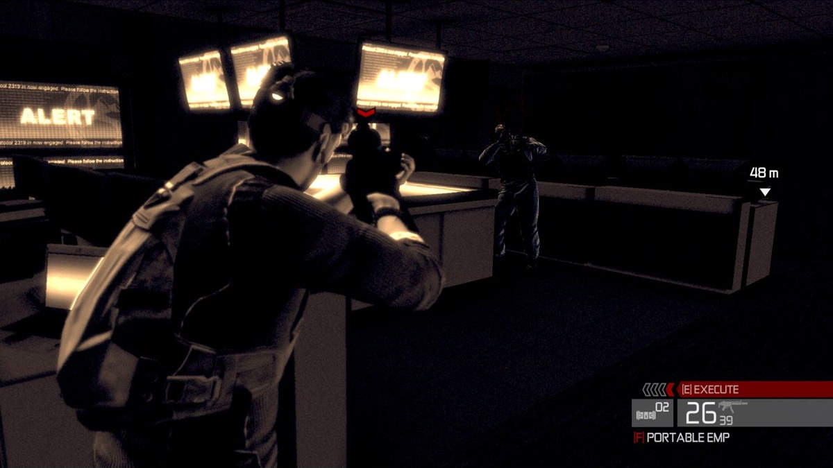 La mise à couvert offre un gameplay plus dynamique, plus porté sur l'action même si l'infiltration a encore son mot à dire j'en parlais à l'instant, les grenades sont aussi une source de frustration. Si les armes ont un bon feedback (très bon même) les grenades ont une puissance qui n'agit quasiment que sur nous. Si elles explosent à moins de 5 mètres, on meurt instantanément, par contre il arrive (et ce souvent) qu'une grenade explose aux pieds d'un ennemi sans que celui ne bouge et donc, ne meurt. C'est quand même assez anormal. Sans ça, cet épisode de Splinter Cell a énormément gagné en terme de fun et de dynamisme. Fini l'époque où on prenait le temps de cacher les corps, désormais on les laisse là où ils sont et on passe à la victime suivante. Là encore c'est idiot, surtout lorsqu'on est encore en mode furtif. Ça ne coutait rien de pouvoir déplacer les corps (on n'a pas arrêté de le faire dans les 4 précédents opus) car s'il y a une caméra ou un garde pas loin, ça peut vite être problématique.