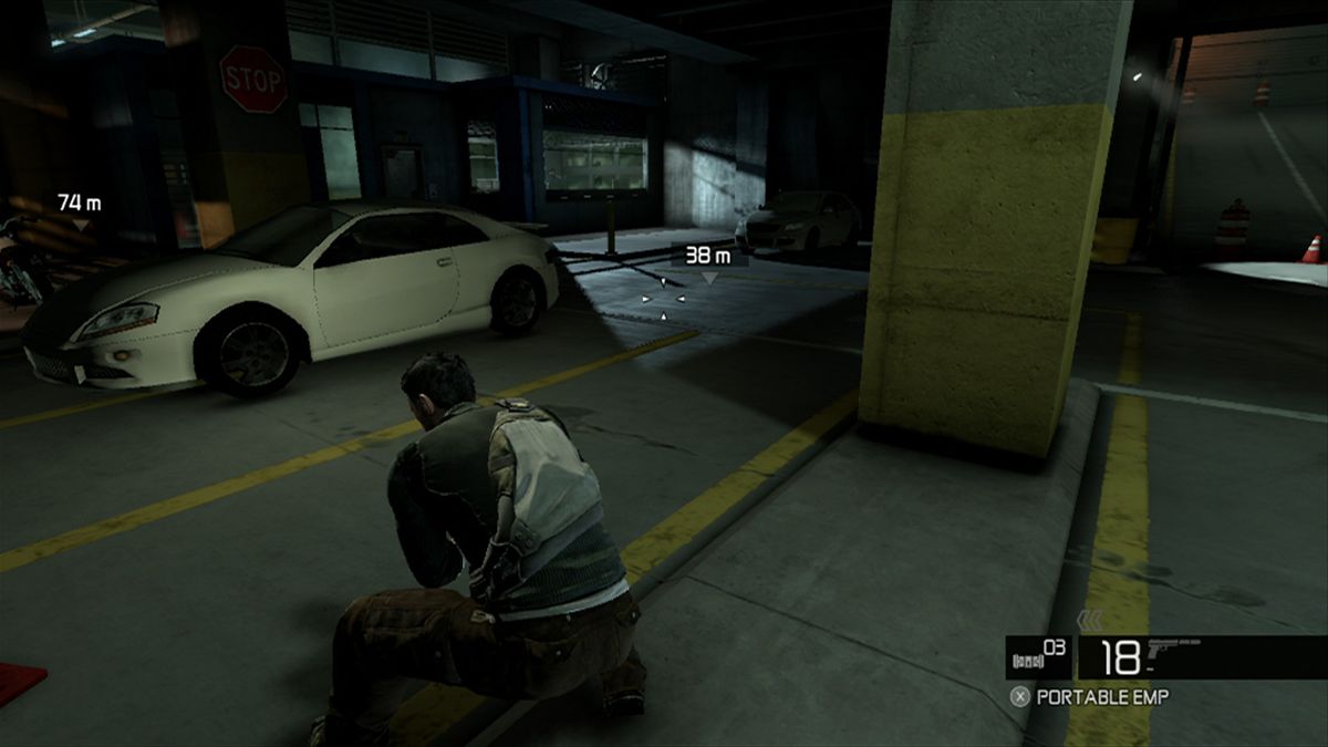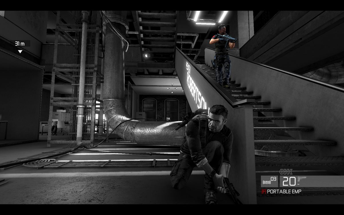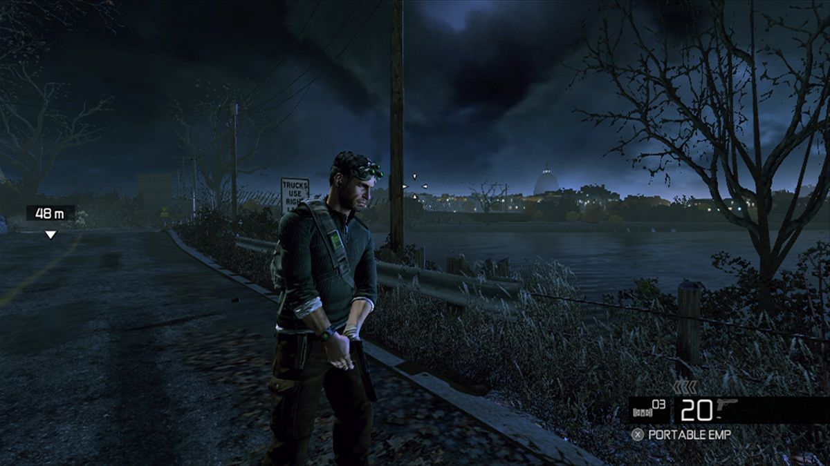 Parfois trop espacés, les checkpoints sont un peu pénalisants mais comme l'aventure est relativement équilibrée, on s'y fait. Car c'est un fait, si on retrouve avec plaisir l'approche un peu obtue de l'infiltration pure et dure (il est d'aillers marrant de voir que l'image passe en noir et blanc lorsqu'on est "invisible" aux yeux de l'ennemi) à côté de ça Conviction est désormais plus proche du Third Person Shooter (TPS) que du jeu d'infiltration brut et exigeant. Voilà aussi pourquoi la durée de vie est si courte. Inspirée par le gameplay de Gears of War (véritable référence du TPS) Sam se met à couvert derrière n'importe quel objet dès qu'on presse LT. On peut passer d'une planque à l'autre (car bien souvent, elles ont le bon goût de se disloquer sous le feu adverse), tirer au jugé, viser précisément, quitter sa position de toute urgence en passant par-dessus... bref le célèbre hit d'Epic a donné quelques leçons.