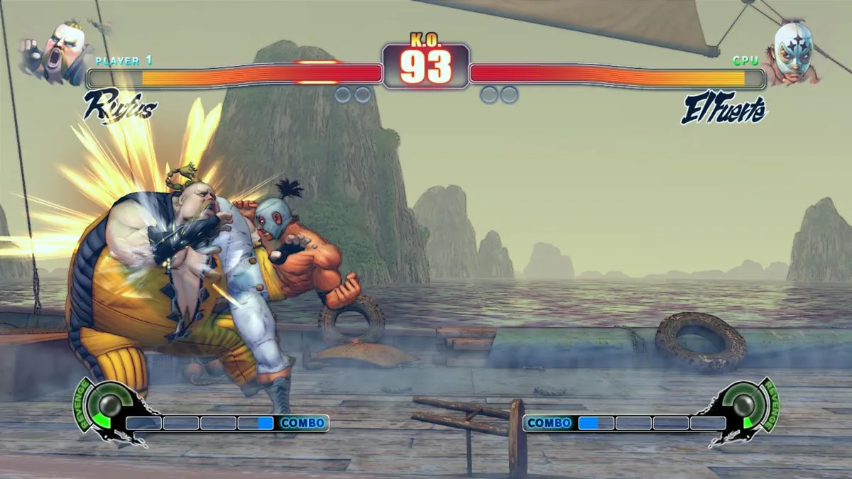 Si certaines séries n'ont jamais su apporter de grosses musiques, avec ses samples bien cheap mais accrocheurs comme on aime, Street Fighter a par contre toujours su nous offrir une excellente track-list. Mais cette richesse sonore s'accompagnait généralement de bruitages bien mous. La preuve encore avec Super Street Fighter II Turbo HD Remix ou Hyper Street Fighter II, qui n'avaient pas de bruitages percutants. Faisant résolument table-rase du passé, avec cette 4e itération, Capcom nous offre enfin ce dont la série avait besoin : des coups qui claquent ! Sans être aussi disproportionnés que sur Super Nintendo, les FX sont réellement dynamiques, percutants, ce qui encense toute la pugnacité des combats, et la violence des coups portés.