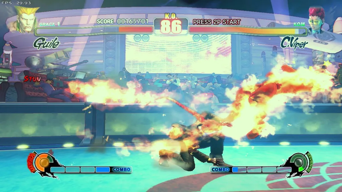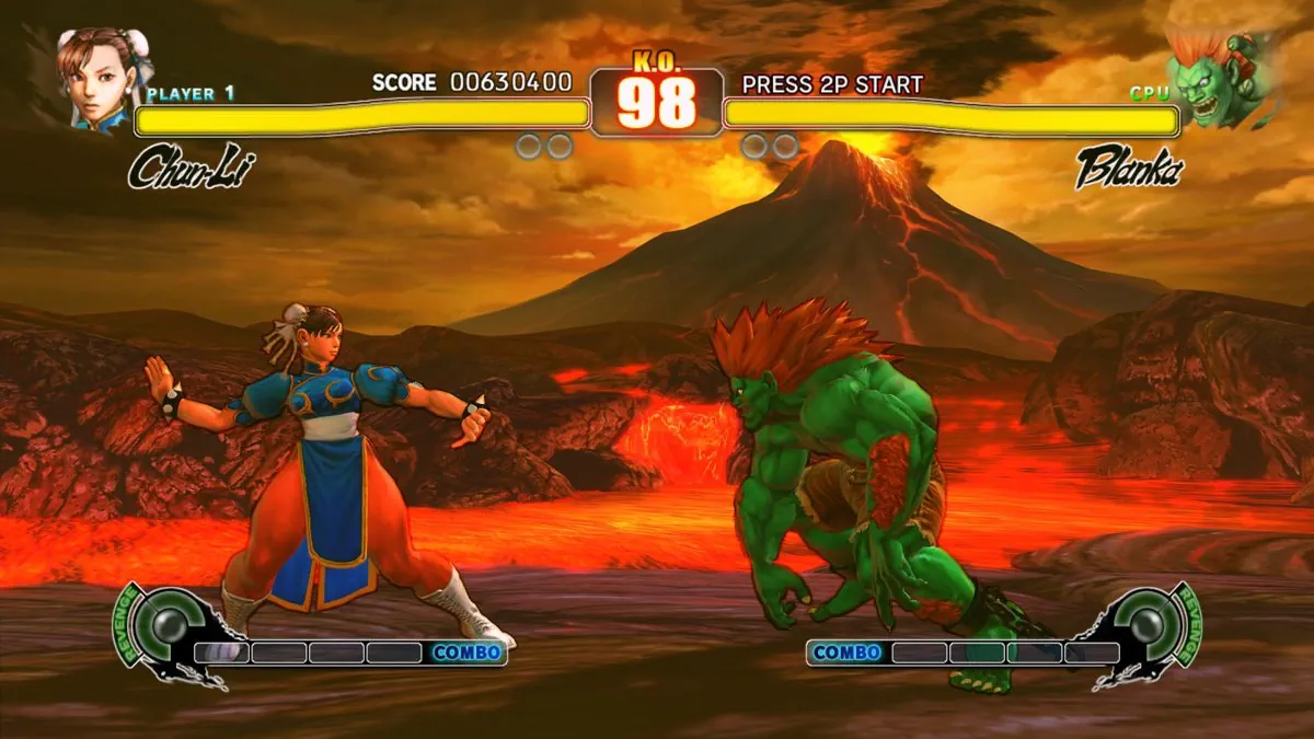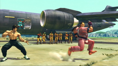 Le moteur graphique est parfaitement fluide et nous offre des décors et des personnages splendides ne sait pas si Capcom a utilisé son moteur fétiche, le MT Framework (qui sévit sur Lost Planet, Dead Rising ou encore Resident Evil 5), toujours est-il que le rendu graphique est véritablement somptueux. Les 17 décors sont tous originaux (surtout pour la salle de training) et certains sont même déclinés en plusieurs versions (jour, nuit, avec ou sans spectateurs). Ces mêmes décors sont en plus très vivants. On peut par exemple citer l'Ecosse où les tonneaux s'effondrent suite aux secousses répétées des combats ou encore la nouvelle base militaire de Guile avec son énorme bombardier qui passe en fond (il est d'ailleurs sympa de voir que le perso qui nous fait coucou n'est jamais le même). Et la masse détails, que tout fan se fera un plaisir de remarquer, est conséquente comme le fait que Vega puisse perdre son masque et ses griffes (c'est la honte pour lui si vous lui mettez la tanné sans qu'il puisse les récupérer) ou encore que tous les protagonistes se suivent du regard. Ainsi on n'a plus l'impression de jouer avec des pantins de pixels.