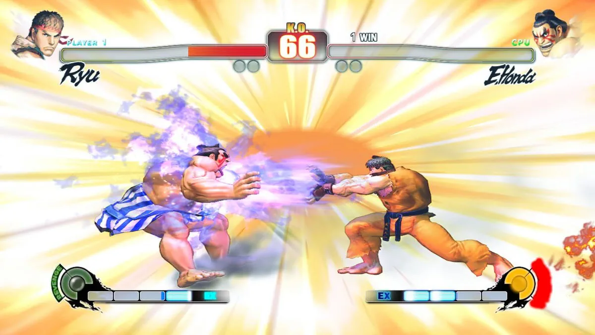 est de retour et pour de bon. Cet épisode IV est exactement comme on l'espérait, c'est le comeback qu'on attendait tous ! S'ouvrant sur une magnifique intro, le scénario est particulièrement bien développé pour le genre et pas moins de 25 personnages sont jouables. On retrouve toutes les meilleures têtes de la série depuis Street Fighter II, plus 6 nouveaux dont le très attendu Gouken. Pour cet épisode du renouveau, Capcom a été secondé par Dimps, le studio japonais derrière les Sonic Advance et Rush, mais aussi Saint Seiya (Sanctuary, Hades) et les Dragon Ball Z pré-2010 (Burst Limit, Budokai et Tenkaichi). Et techniquement, le duo Capcom/Dimps nous livre un travail artistique admirable avec des décors très agréables, originaux, une animation parfaitement fluide, une gestion des collisions inter-personnages superbement gérée et surtout des protagonistes magnifiquement dessinés dont les expressions faciales sont une réelle nouveauté. Côté son on n'a que du lourd, avec de très bons remixes des thèmes qu'on connaît tous, de très bonnes voix et surtout d'excellents bruitages qui claquent comme il se doit. Un régal autant visuel qu'acoustique.