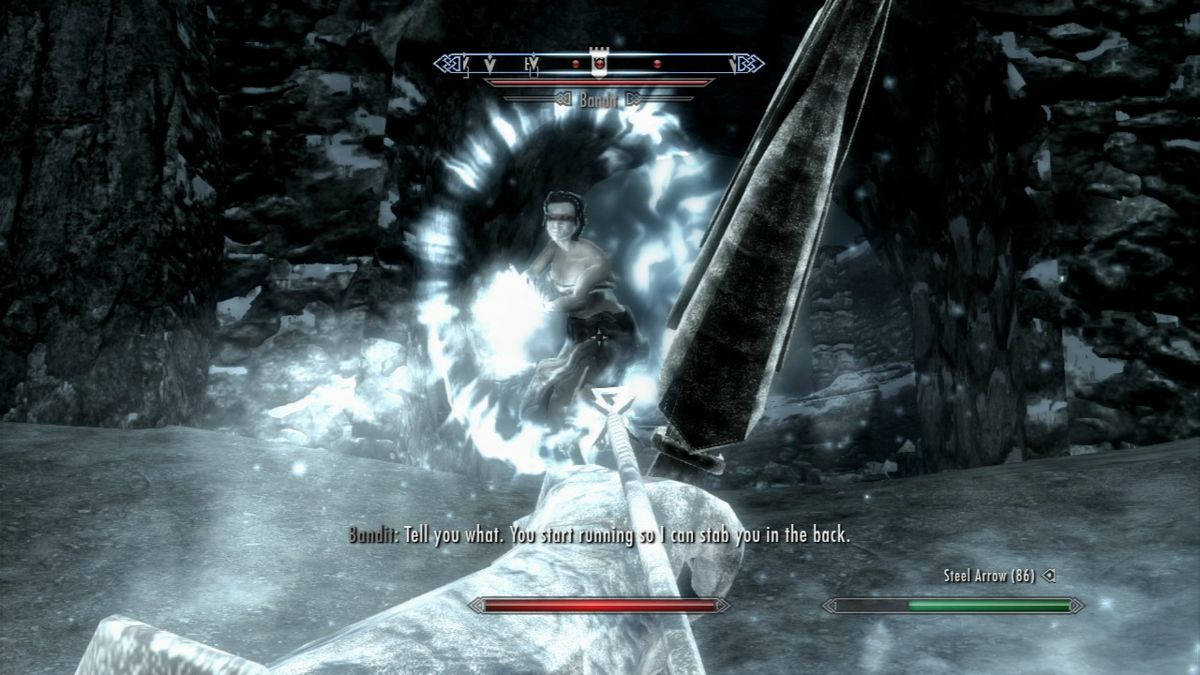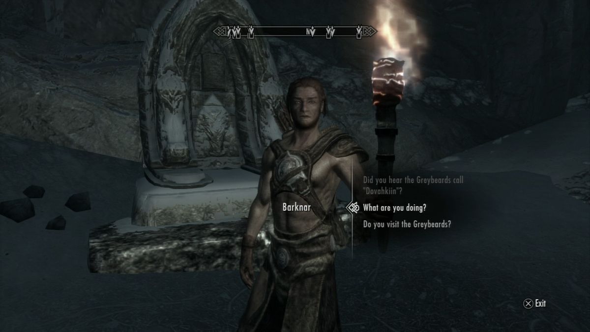 Pour avoir lu et relu des commentaires louant les hermétiques dialogues de Morrowind (dans lesquels il fallait s'imprégner d'informations écrites pour avoir une chance de trouver le lieu d'une quête) je comprends bien que la simplicité apporté dans Oblivion (la fameuse flèche verte indiquant l'objectif) et la casualisation de Skyrim peut leur faire froncer des sourcils. Mais à mes yeux passer demi-heure à trouver une grotte mal indiquée n'a que peu d'intérêt, et l'interface 2.0 de la carte du monde de Skyrim permet justement de ne rien oublier, d'être sur sa progression, etc. Ce sont au final 2 extrêmes, Oblivion en était le juste milieu, mais l'un dans l'autre on y perdra surtout moins de temps (et aussi moins de miettes… sans doute).