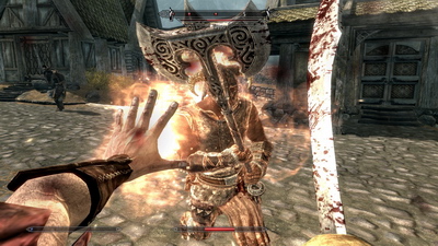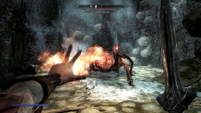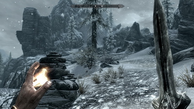 La prise en main de Skyrim n'est pas dégueulasse. L'utilisation des 2 mains (comme dans The Witcher) est très bonne dans l'ensemble, on peut choisir des favoris dans l'équipement et les pouvoirs (pour des accès rapides), et il n'y a que le menu, encore une fois très austère, qui gâche un peu le tableau (sur PC, Bethesda a un peu fâché ses joueurs au début en transposant les commandes paddle sur clavier, ce qui a vite provoquer de la confusion dans la gestion du jeu et surtout du menu... depuis ils ont corrigé le tir).