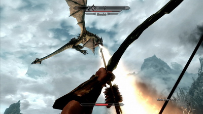 L'affrontement commence généralement quand le joueur entend le cri du bestiaux, retentissant dans les airs. On sait alors qu'il nous reste peu de temps pour le repérer et s'organiser. Le dragon est une créature volant avec une aisance lourde de sens : la première partie du combat consiste ainsi généralement à forcer le mastodonte à se poser pour en découdre définitivement. Pour ce faire il y a essentiellement 2 méthodes (les cris n'étant pas assez efficaces pour suffire, au moins en début de partie) : l'arc ou la magie. L'arc, s'il n'est utilisé que sur eux, sera rapidement obsolète (comme toutes autres compétences non privilégiée dans le jeu), et la magie également. C'est donc coton pour les purs guerriers qui devront se faire une raison ou bien feinter en forçant le dragon à porter son attention sur une autre créature afin d'en profiter.