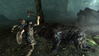 Alors bien sûr on retrouve les classiques matières d'objets (acier, dwemer, verre, eben, daedric...) regroupée en 2 catégories (léger et lourd), la diversité de l'équipement étant au final assez riche. Il y a peut être moins de propriétés magiques différentes, mais celles qui sont encore là on été améliorées (par exemple les éléments feu, glace et foudre ont leurs propres avantages) et peuvent être utiles (avant on avait des trucs vraiment limite). Question bestiaire nous avons droit, une fois de plus, à un renouvellement conséquent : trolls, géants éleveur de mammouth, morses... et les plus classiques du genre Daedra, brigands de tout poils, ours, loups, etc. Le tout contribue à rendre la contrée de Skyrim unique et lui attache une identité encore jamais aperçu dans Elder Scrolls.