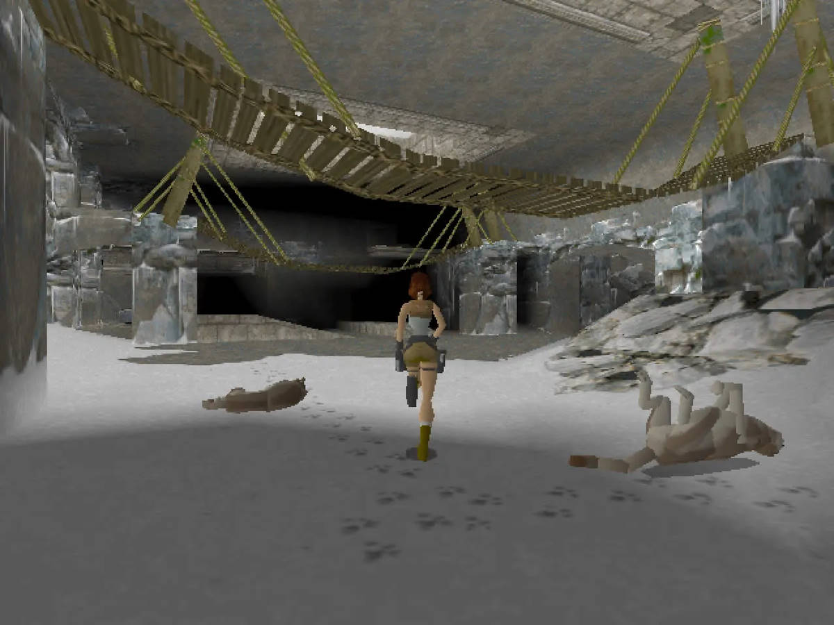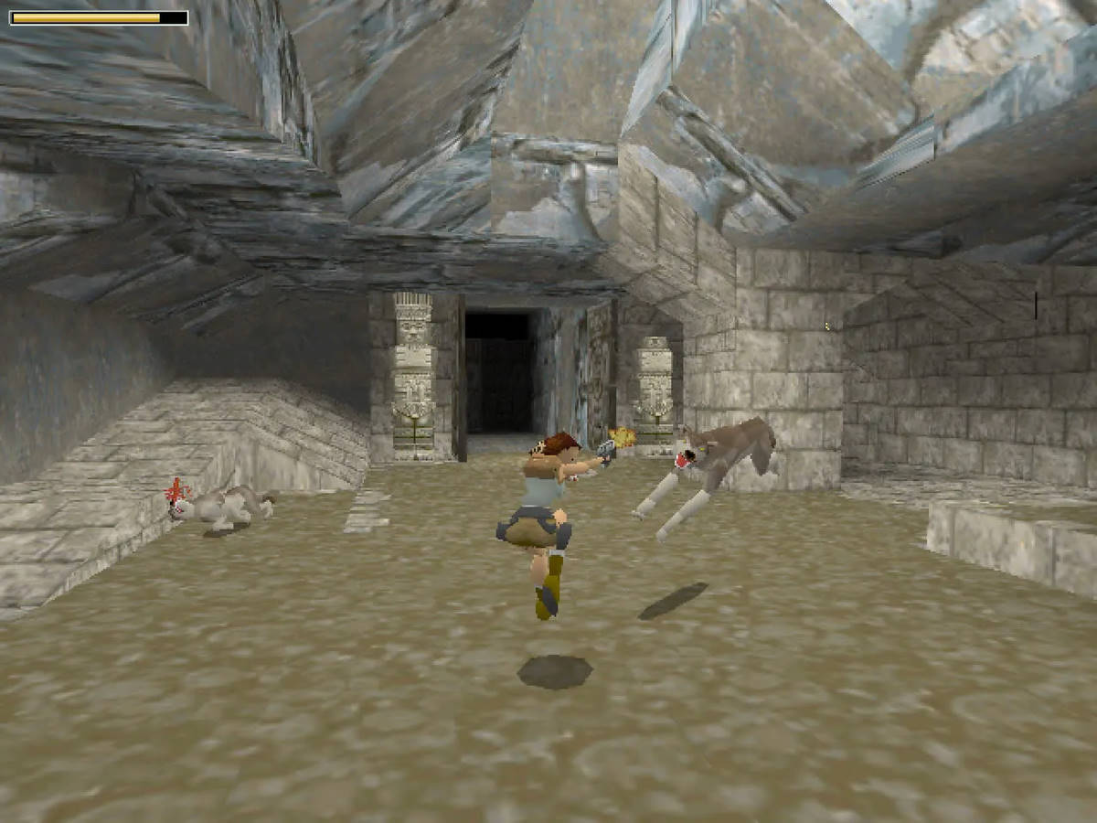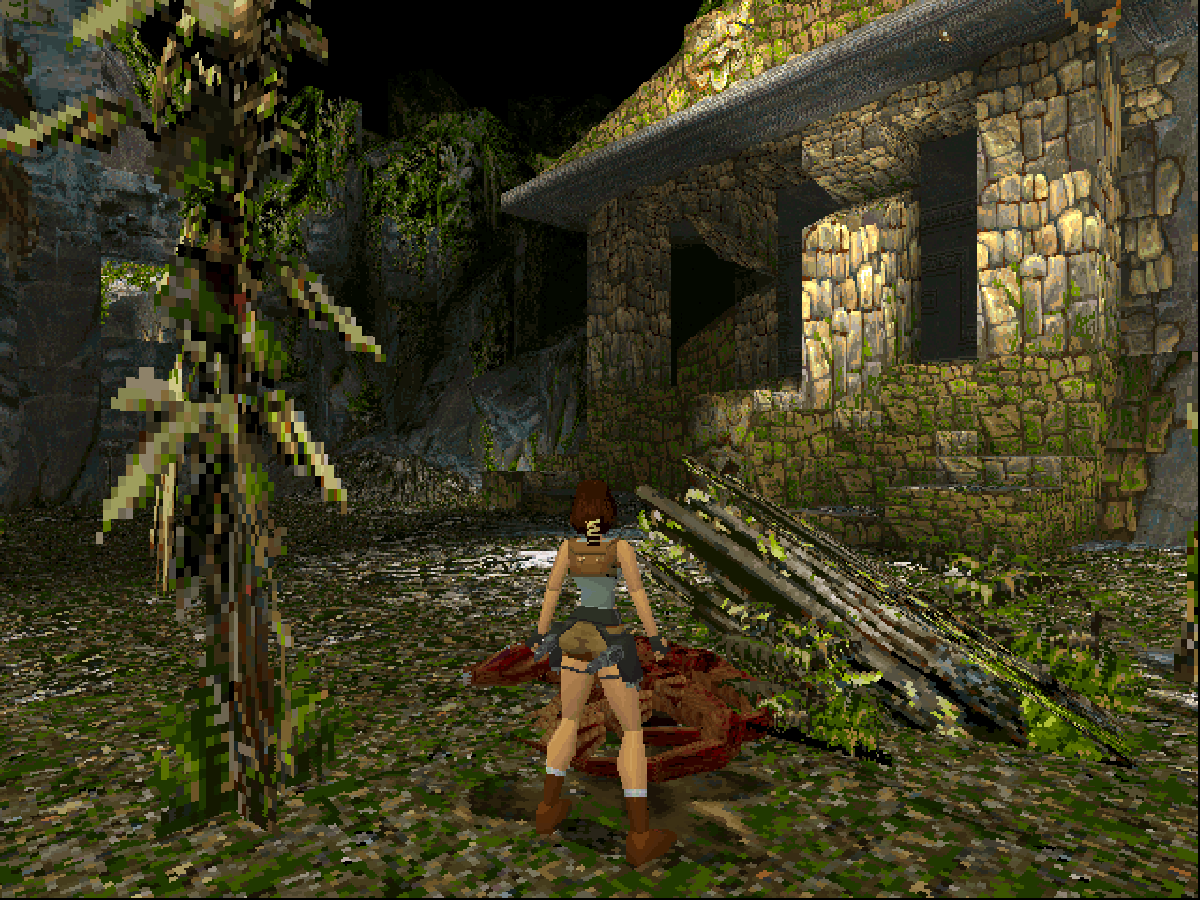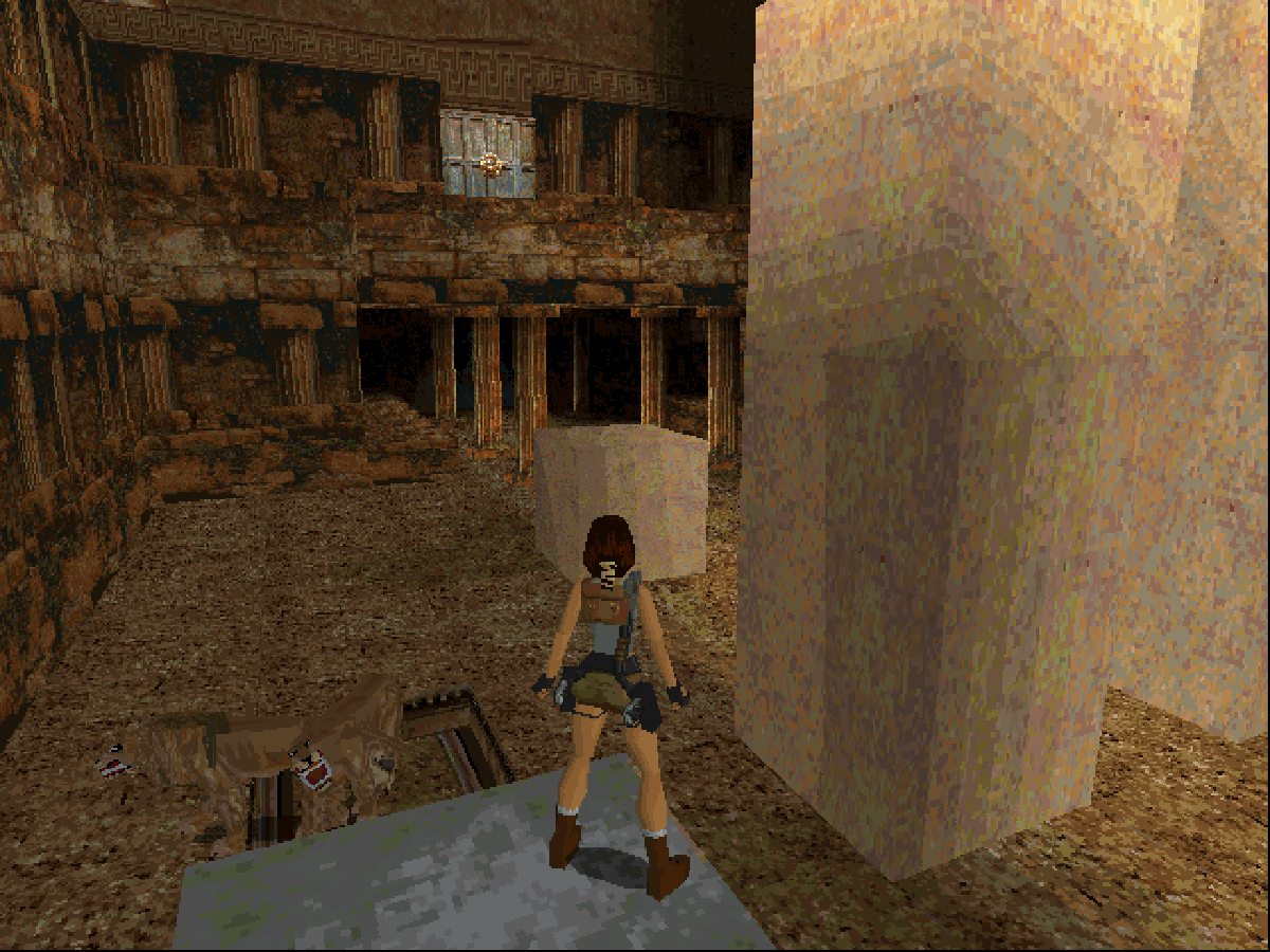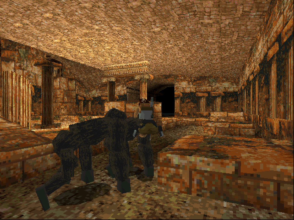 La réalisation n'est pas parfaite (ralentissements, clipping) mais à y regarder de plus près, Tomb Raider est une vraie réussite artistique et technique le pilier du titre car les divers mouvements et autres habilités de miss Croft, nous permettent de finir des levels toujours plus complexes, s'apparentant plus à des labyrinthes bien construits que de simples zones à parcourir. En effet, si on peut trouver la jouabilité lourde, voire même étrange, en réalité il faut bien comprendre qu'à cette époque-là, les pads à sticks analogiques n'existaient pas encore sur consoles et les développeurs ont dû trouver une prise en mains adaptée à la complexité des architectures à arpenter. Car c'est un fait, si on peut trouver la jouabilité bizarre (au moins autant que celles des premiers Resident Evil), il faut savoir qu'en fait elle est extrêmement précise. Les sauts font toujours la même longueur, Lara exécutera toujours telle ou telle action de la même manière, ainsi Tomb Raider possède une sorte de quadrillage invisible qui permet de savoir avec précision, quel résultat on obtiendra en réalisant certaines actions. Ce n'est pas tout à fait nouveau puisque des jeux comme Flashback le faisaient déjà (Oddworld en suivra d'ailleurs ses traces), sauf qu'avec Tomb Raider on ne parle plus d'un simple jeu en 2D et en vue de profil, mais bien d'un jeu entièrement en 3D et vue à la 3e personne. Les sensations y sont donc plus immédiates, plus grisantes, plus immersives !