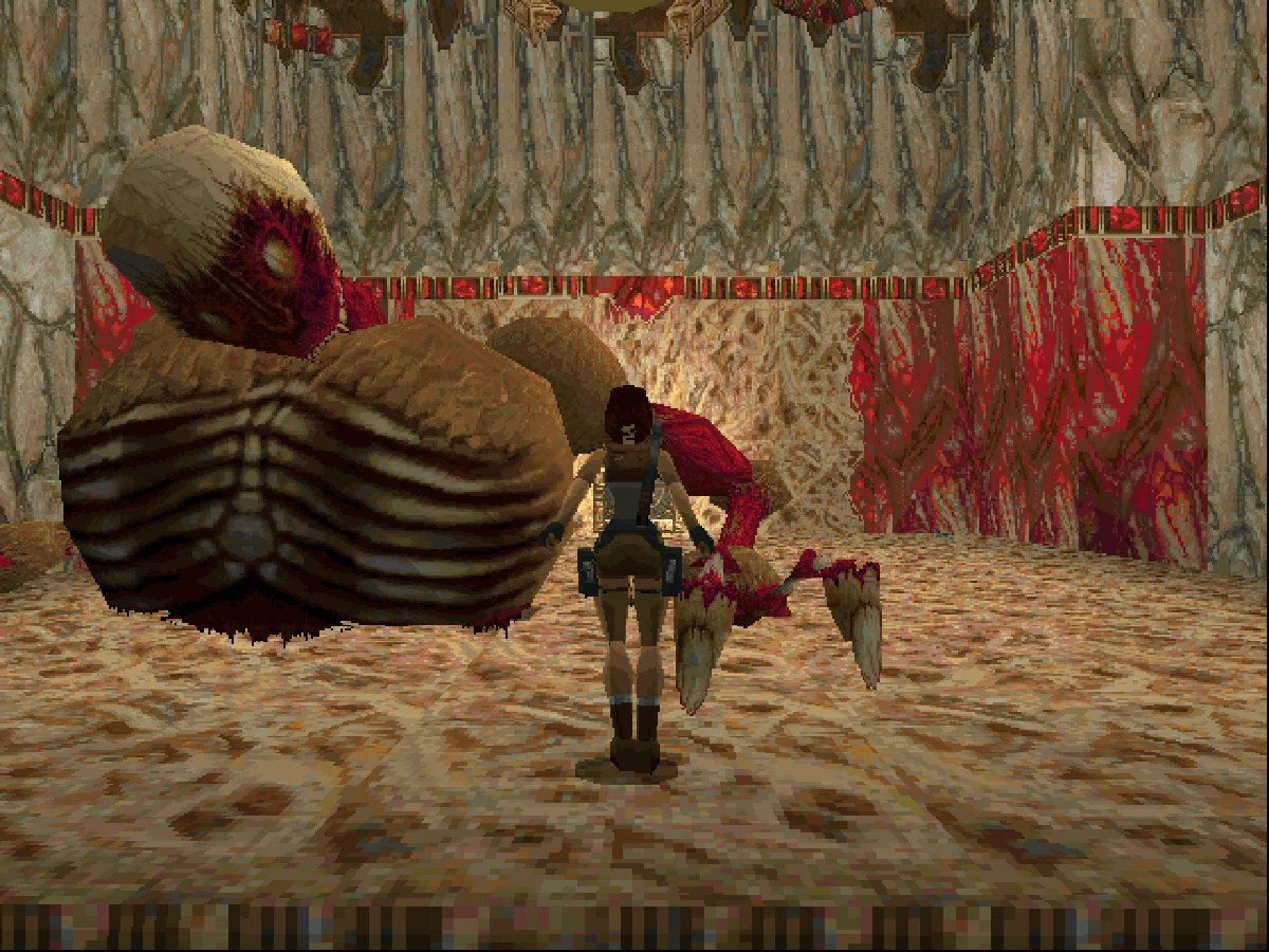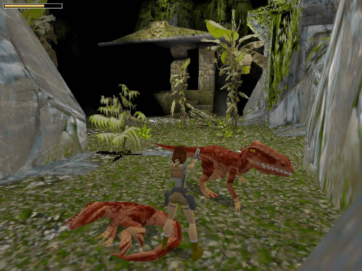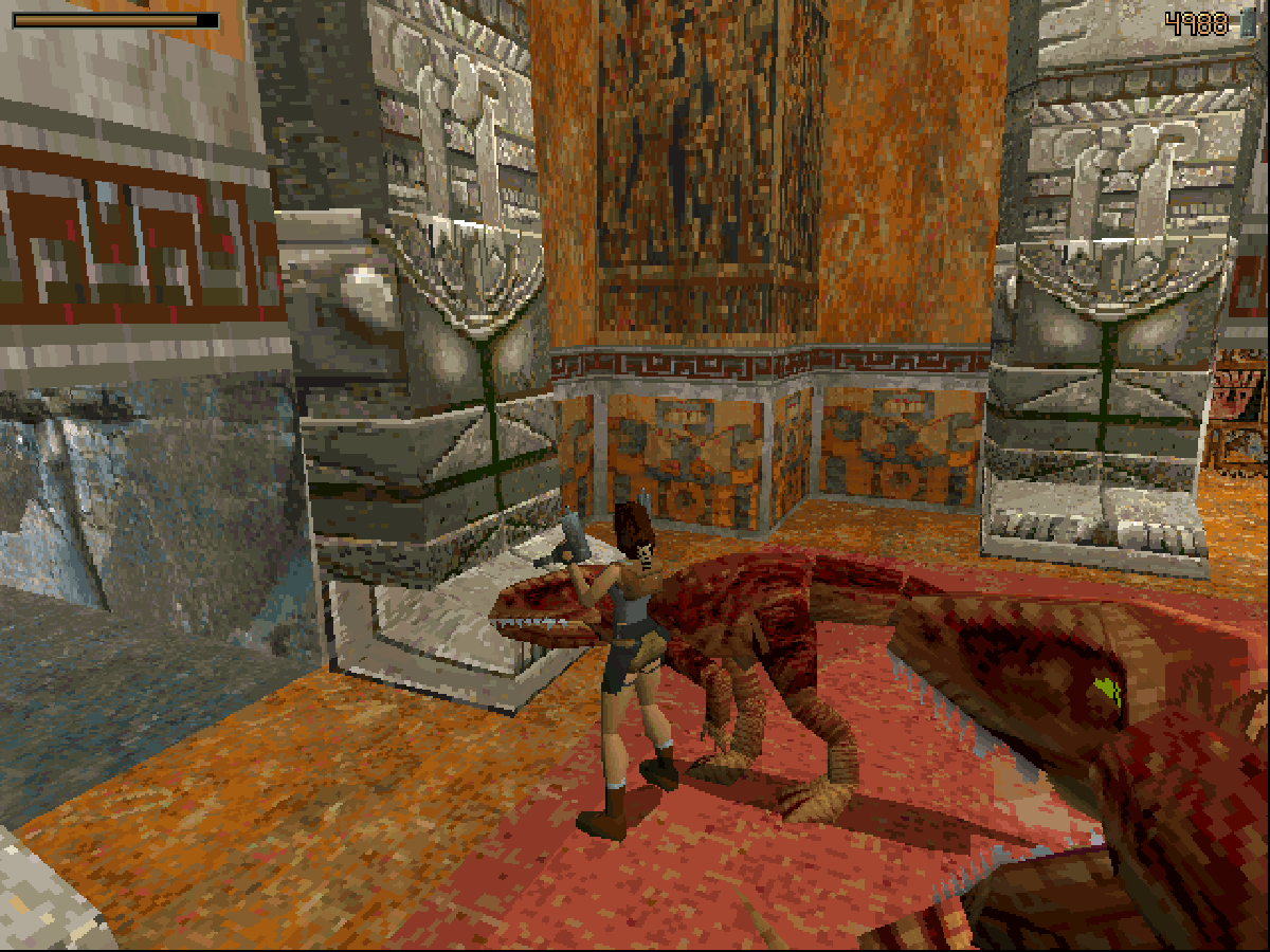 Ajoutons qu'en plus de niveaux assez complexes à arpenter par moment, le titre de Core Design pose aussi quelques énigmes, certes assez simples mais où il faut tout de même réfléchir un minimum. Le jeu peut ainsi paraitre hardcore mais si on se fait à sa jouabilité, qu'on a un bon sens de l'orientation et un minimum de jugeote, il est finalement abordable. Seul véritable couac : si sur PC on peut sauvegarder quand on veut, sur consoles on ne peut le faire qu'en présence de cristaux bleus, et une seule fois, ce qui rend forcément les versions Saturn et PlayStation bien plus ardues. La durée de vie est très longue : comptez au moins 15h pour le finir une première fois et encore, sans passer du temps à chercher toutes les zones secrètes. Enfin l'action n'est pas très présente dans l'aventure. Il n'y a que 6 boss dans tous le jeux (si tant est qu'on puisse les appeler ainsi), le reste des ennemis étant formé la faune locale : loups, crocodiles, gorilles, lions... puis des opposants nettement plus épicés comme un T-Rex (!), des raptors, des momies ou tout simplement des monstres.