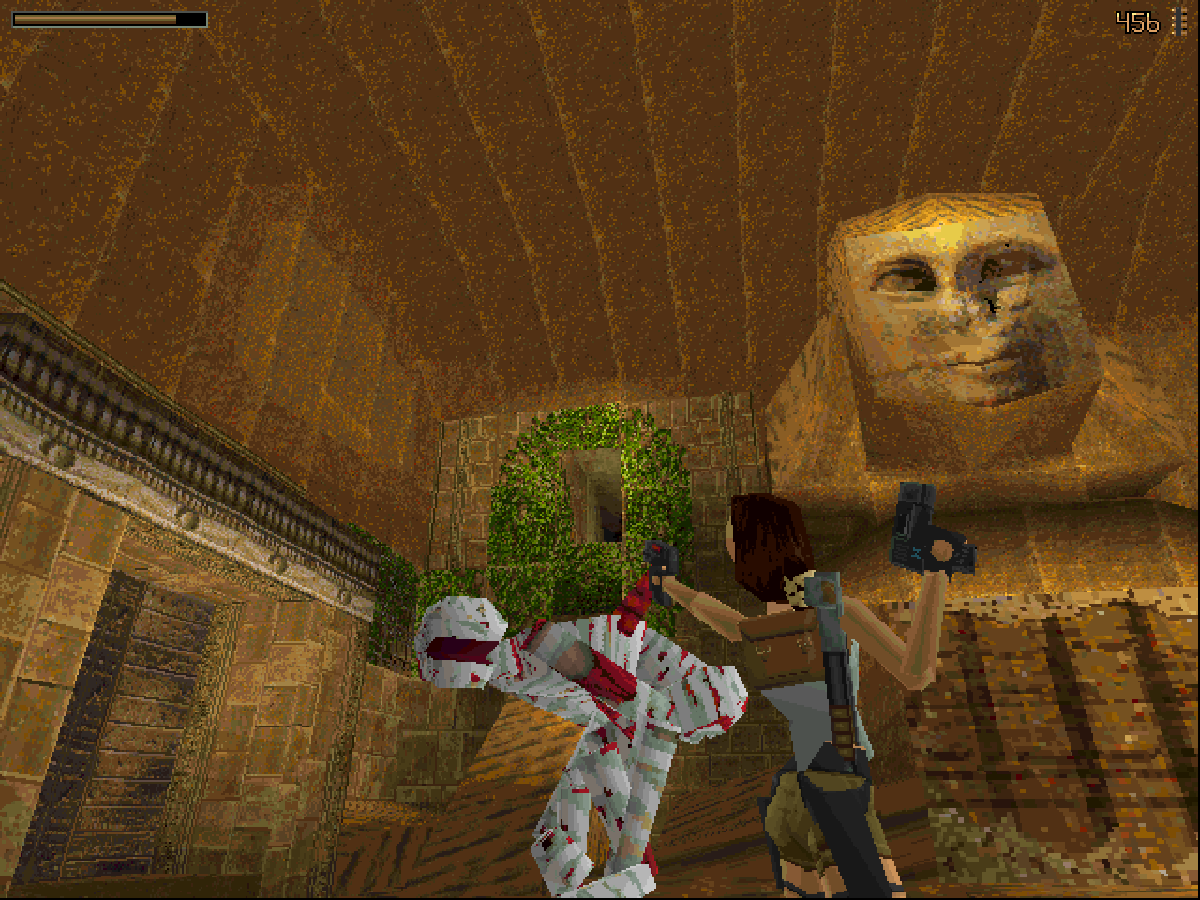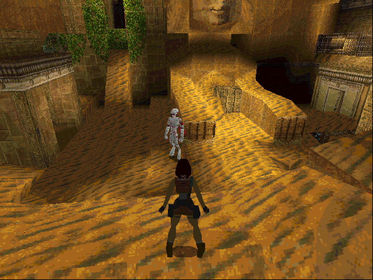 Si jusqu'à présent les jeux d'aventure étaient relativement timides (par exemple, comment un point & click, type The Secret of Monkey Island ou les Les Chevaliers de Baphomet auraient pu nous donner de réelles sensations ?), avec l'avènement de la 3D, les développeurs ont laissés voguer leur imagination et nous ont proposé une toute nouvelle dimension à explorer. Avec Tomb Raider, on retiendra 2 noms : Philip Campbell mais aussi et surtout, Toby Gard dont Lara Croft est un peu l'enfant prodige. Et il est vrai que si par la suite Lara Croft deviendra une véritable égérie que tout le monde s'arrache (d'abord avec des ventes colossales de jeux, ensuite dans des publicités, des fringues puis dans 2 films où Angélina Jolie prendra le rôle éponyme), il faut reconnaitre avant tout le génie de ce designer de talent. Remettons-nous dans le contexte (en 1996 donc) et finalement, comment ne pas trouver ce jeu magnifique ? La diversité des environnements, l'immensité parfois impressionnante de certains lieux et surtout la beauté architecturale de certains passages, vont vous faire voyager comme jamais.