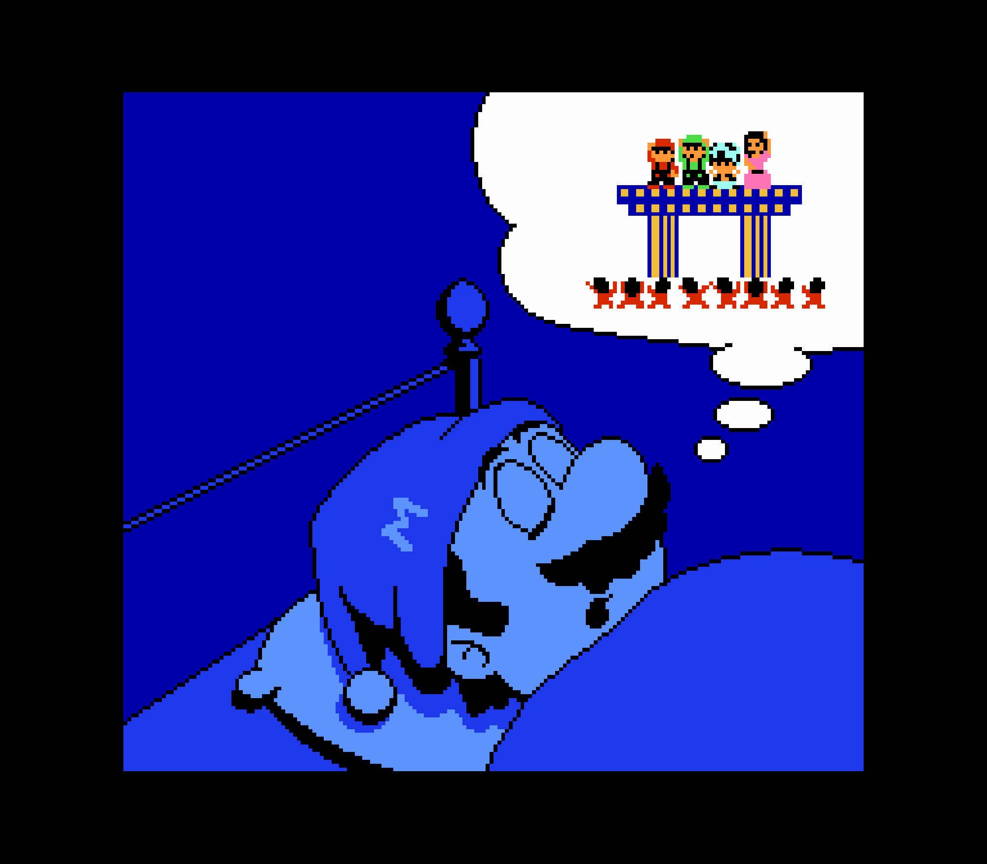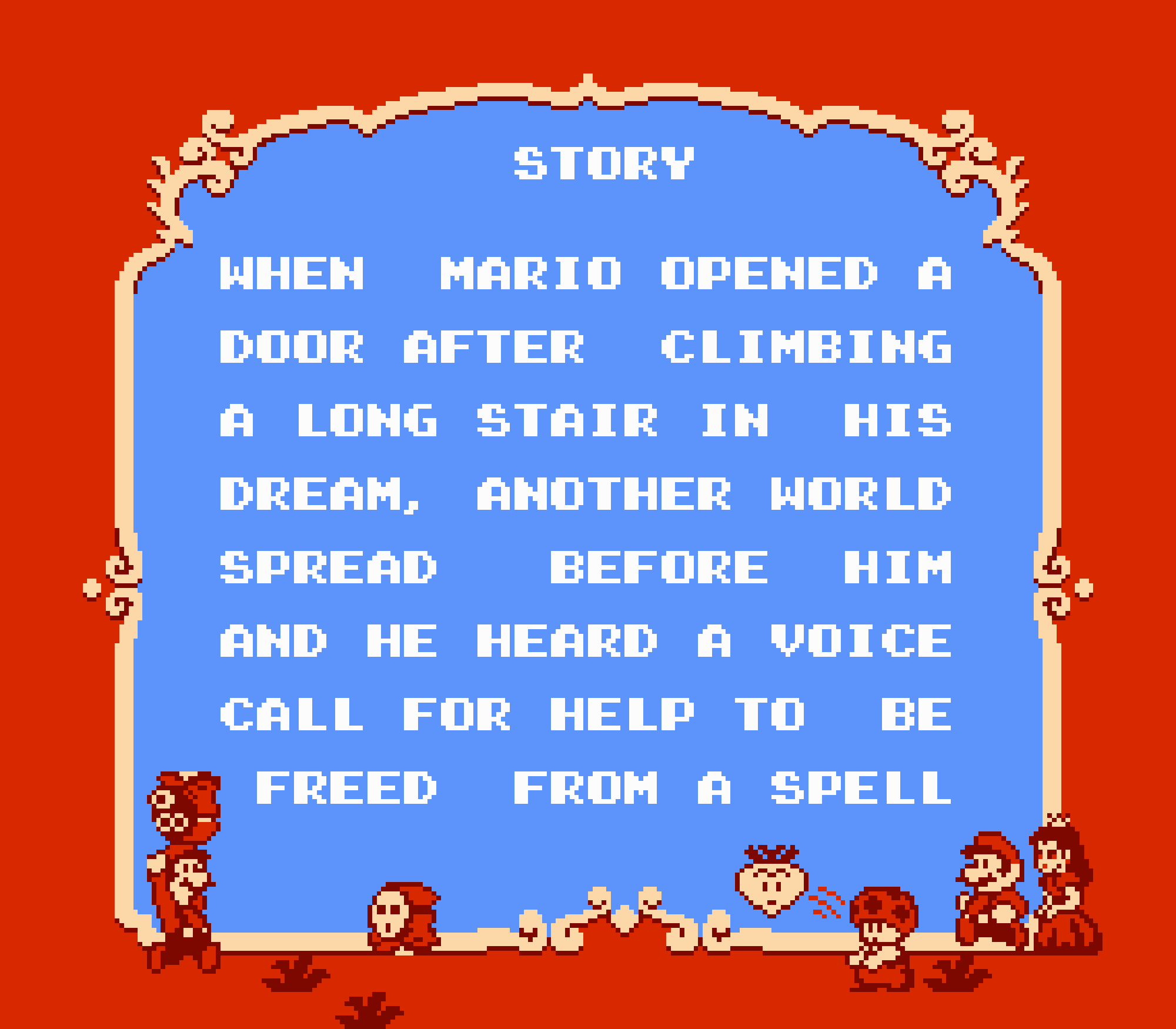 Super Mario Bros 2 c'est Yume Kojo avec les personnages de Mario Bros. Un coup markéting ambitieux et payant, même si ça fait de cet épisode un numéro à part dans la série comme le "vilain petit canard" de la série, Super Mario Bros 2 change complètement de gameplay passant d'un jeu de plates-formes pur et dur à quasiment un jeu d'aventure. Cet épisode ne fut pas créer par son géniteur originel (Shigeru Miyamoto) mais par Nintendo of America. Mais pourquoi les japonais ont-ils eu une dent contre ce jeu ? Et bien la réponse est simple : en fait Super Mario Bros 2 est l'adaptation de Yume Kojo : Doki Doki Panic, sorti au Japon sur le FDS de la Famicom en 1987. Développé par la Nintendo R&D4, le plus étonnant c'est que le jeu a été conçu (en partie) par Shigeru Miyamoto et son équipe. Etant donné la popularité du premier Super Mario Bros à travers le monde, Nintendo of America a repris le jeu et a transformé les 4 protagonistes issu de l'univers Hindou, pour les 4 plus appréciés personnages de Mario Bros, à savoir Mario lui même, son frère Luigi, Toad et la Princesse Peach. Et mine de rien, s'il était sorti sous sa forme initiale, je ne suis pas sûr de Yume Dojo aurait eu beaucoup de succès en occident, malgré un gameplay et un univers intéressants.