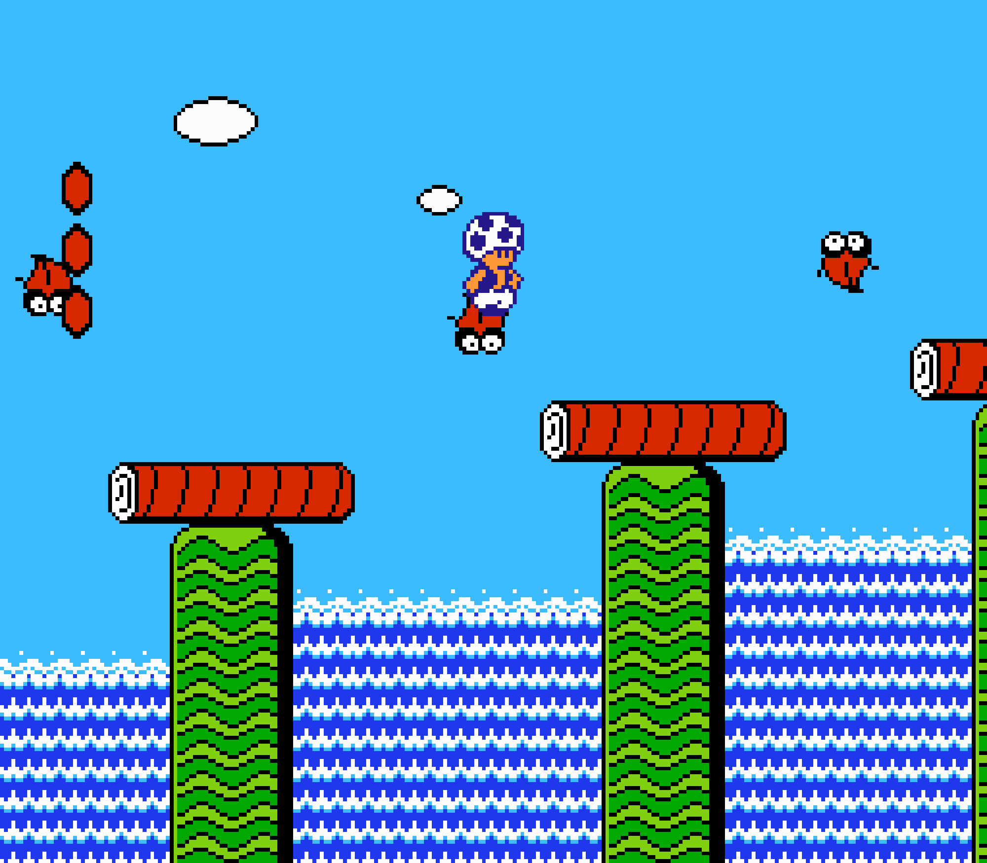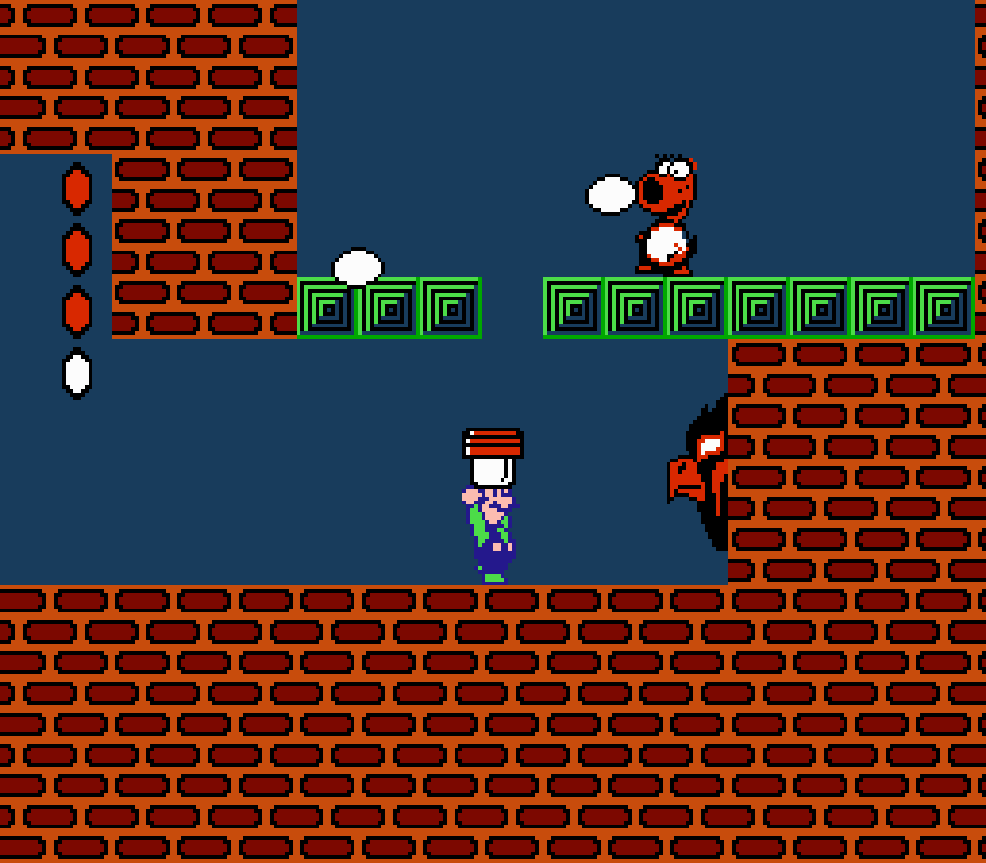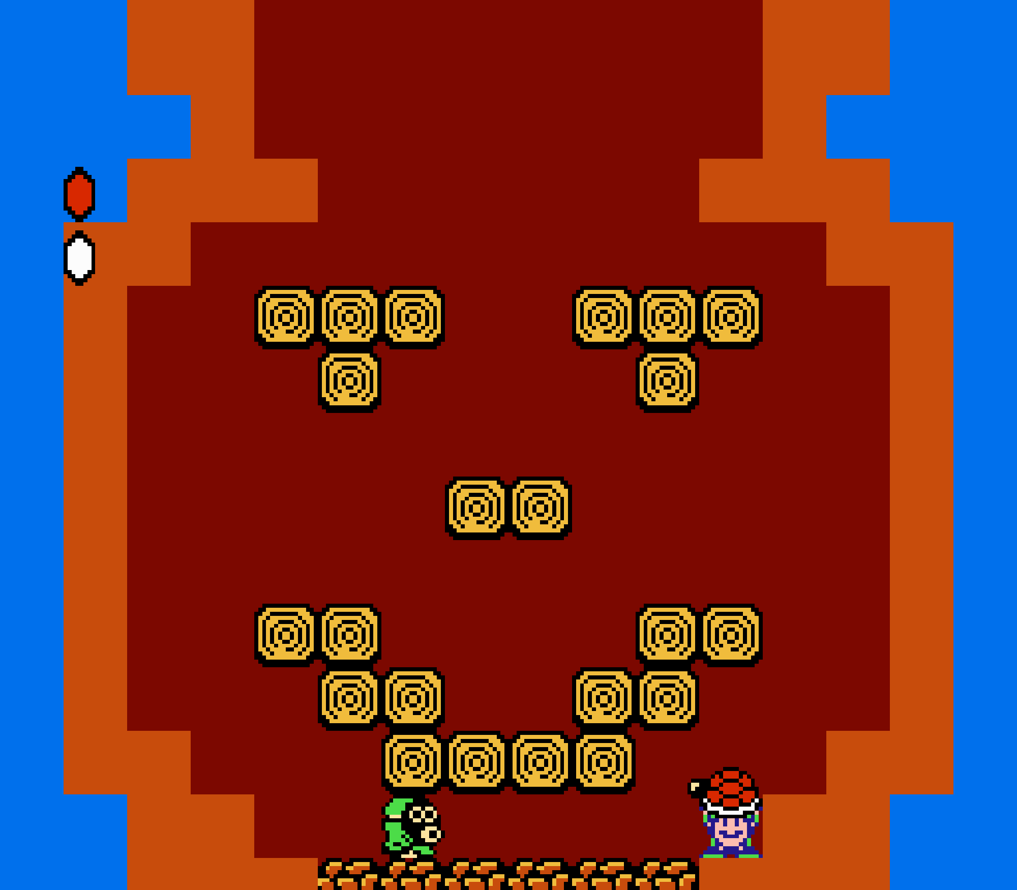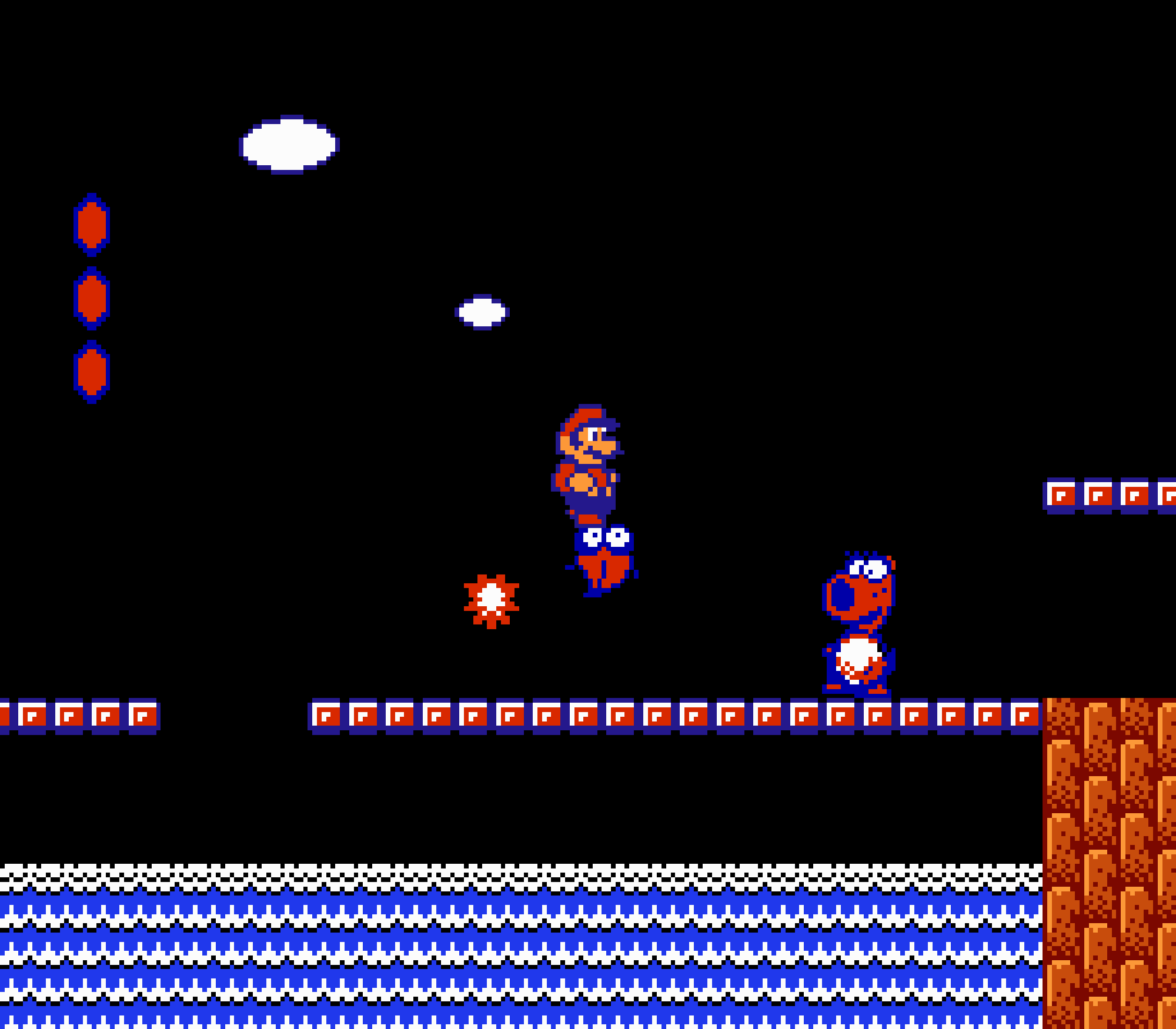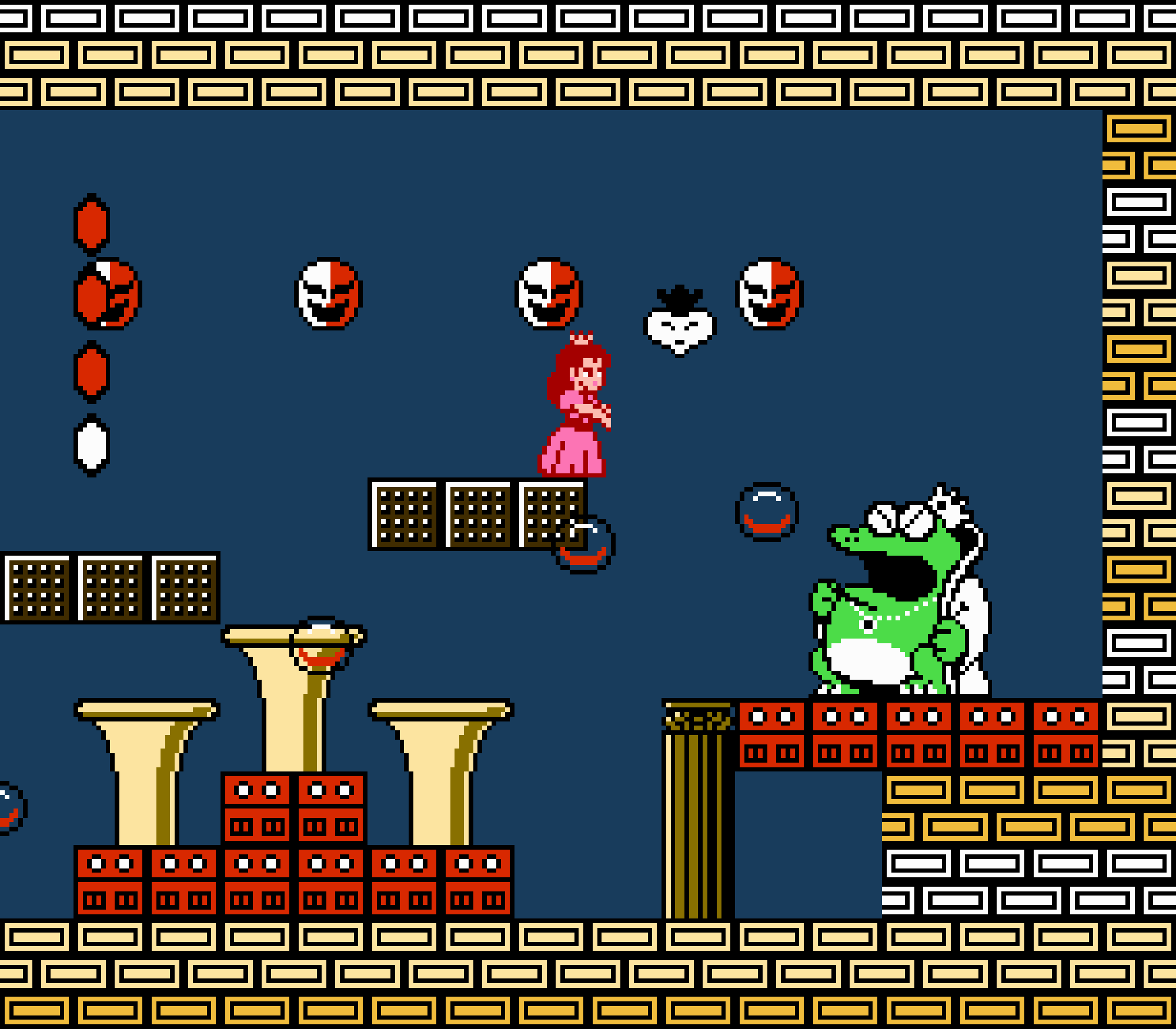Tout d'abord il faudra à chaque tableau choisir son personnage parmi les 4 et les ennemis ne sont plus des Koopa troopas mais divers animaux, certes mignons mais qui n'ont plus rien à voir avec les fantômes, champignons et tortues d'autrefois. Le boss final est d'ailleurs un crapaud géant nommé Warp. Les autres boss passent d'une souris géante à un serpent à 3 têtes, mais le plus récurent n'est autre que Birdo, cette étrange bestiole qui nous balance des oeufs avec sa propre bouche (?). Heureusement qu'il y a Mario parce qu'on se demande bien où est passé son univers... Pour en revenir à nos 4 personnages jouables, on aura donc le choix entre Mario, Luigi, Toad et la Princesse Peach. Loin d'un simple changement de sprite, chaque perso à ses petites facultés bien à lui. La préférée de tous, la Princesse, pourra voler un court instant, Toad est le seul à courir à la même vitesse lorsqu'il porte quelque chose, Luigi saute plus haut que tous les autres mais est complètement injouable à cause de son inertie, et enfin Mario reste le personnage le plus équilibré de la bande.